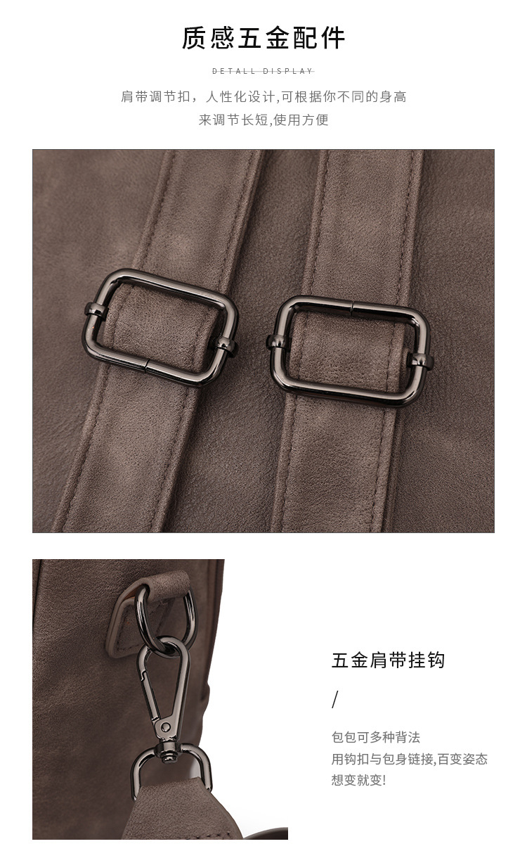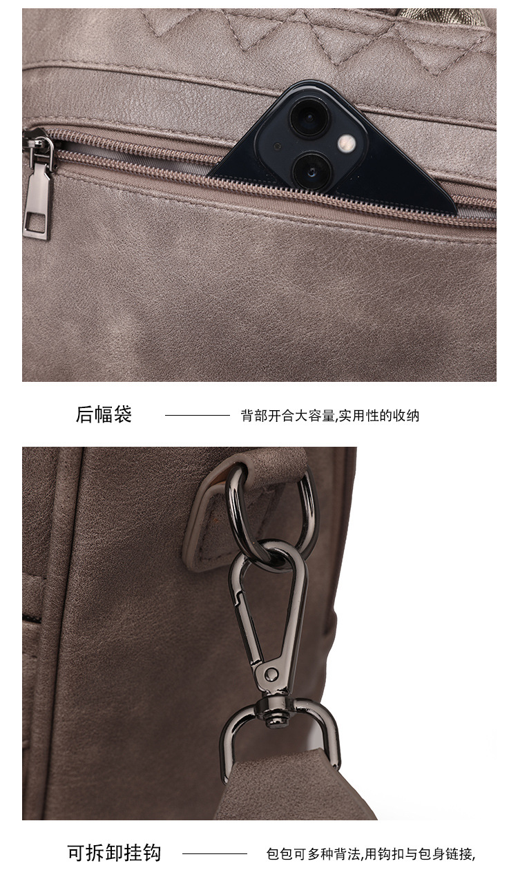 产品两侧肩带挂耳以及肩带根部位置,全部使用“三角形”车线加固,拉力增强,承载力加大;