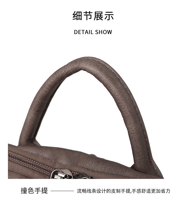产品内部的三个内兜也全部使用加深设计,其中开口包边设计的内兜开加深,可放置平板电脑等大形物品;