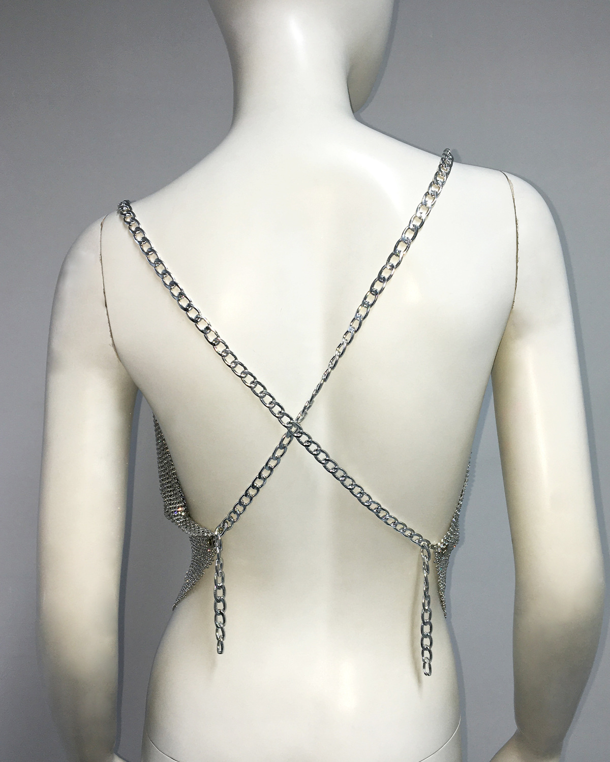 유럽과 미국의 국경 간 새로운 맞춤형 금속 모조 다이아몬드 슬링 조끼 나이트 클럽 트렌디 한 핫 걸 다이아몬드 내장 로우 컷 탑