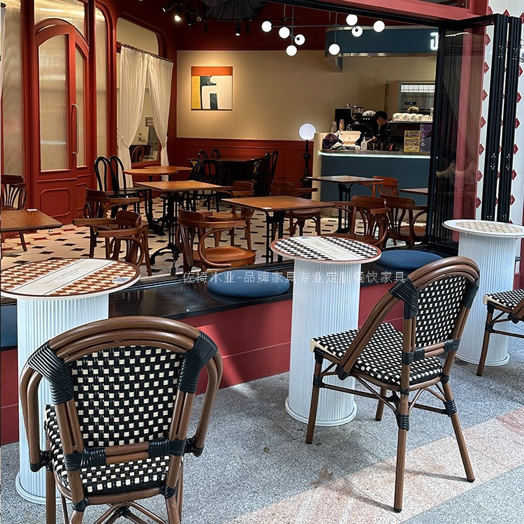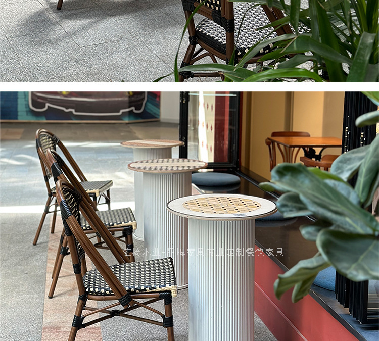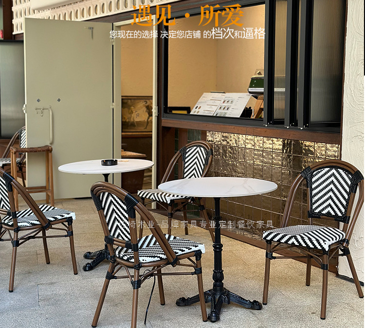 야외 프랑스 레스토랑 호텔 식당 의자 커피 숍 등나무 의자 정원 야외 테이블과 의자 조합 미국 야외 등나무 의자스토어 가기