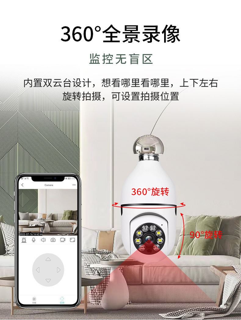 휴대 전화 원격 무선 카메라 야외 야간 투시 전구 카메라 360 도 파노라마 홈 감시 카메라