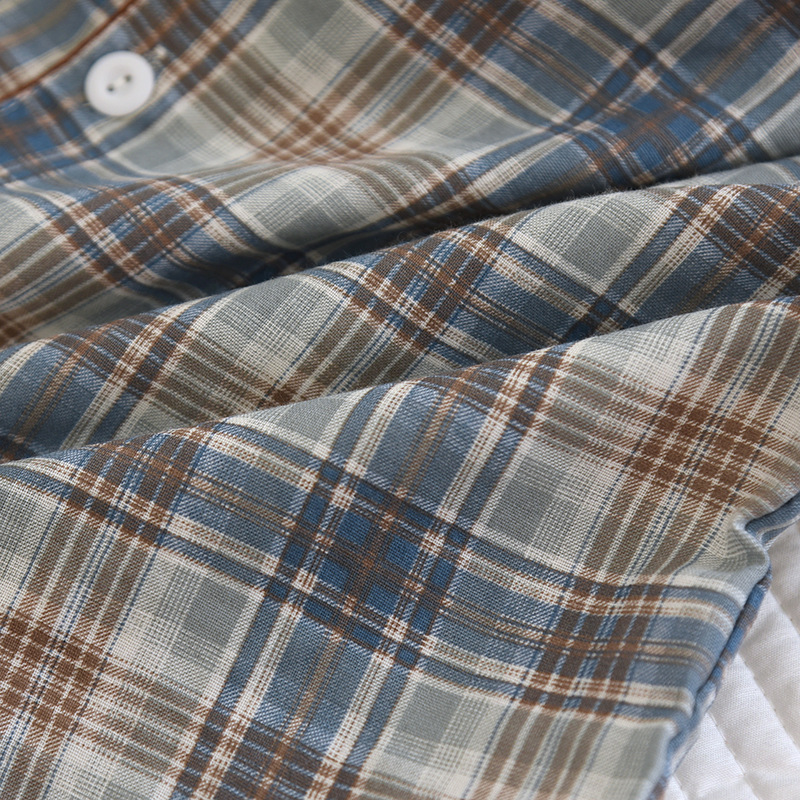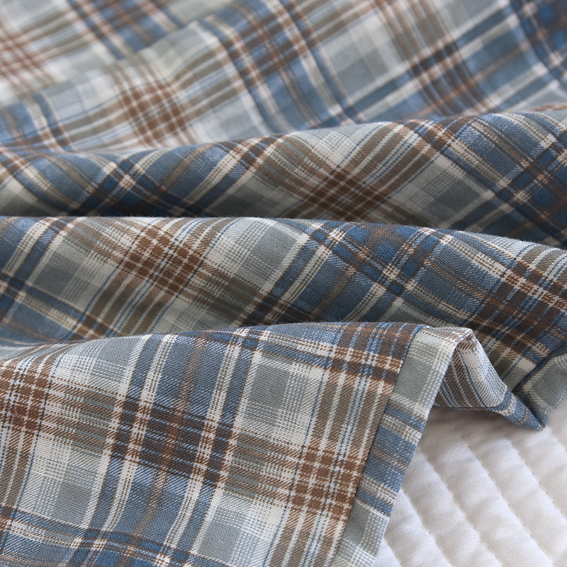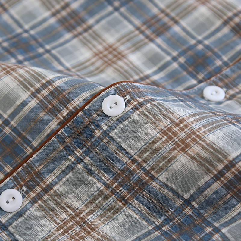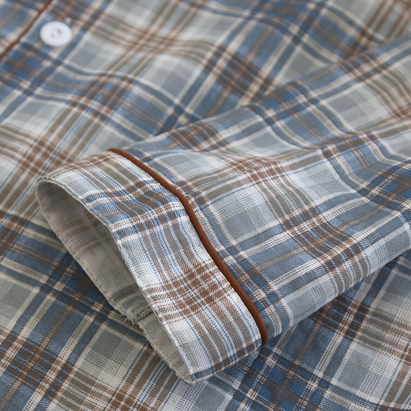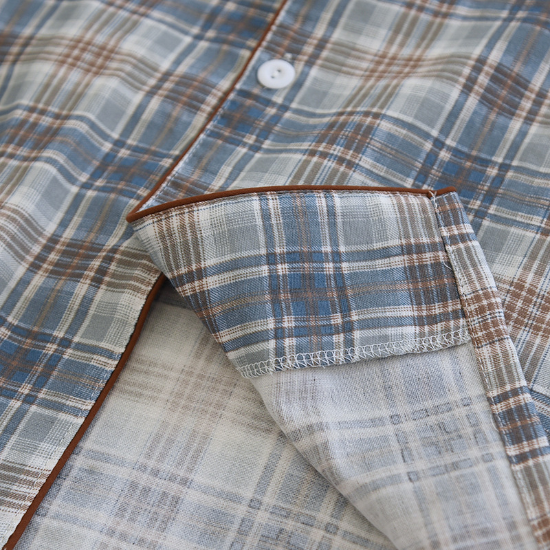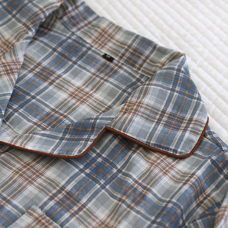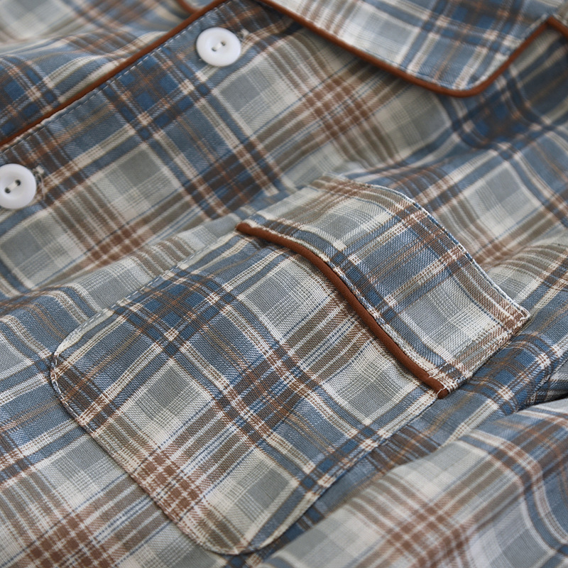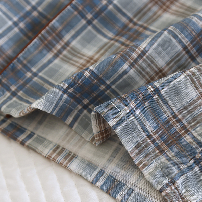 봄과 가을 더블 거즈 코튼 파자마 남자의 느슨한 큰 크기 얇은 긴 소매 바지 간단한 격자 무늬 홈 옷스토어 가기