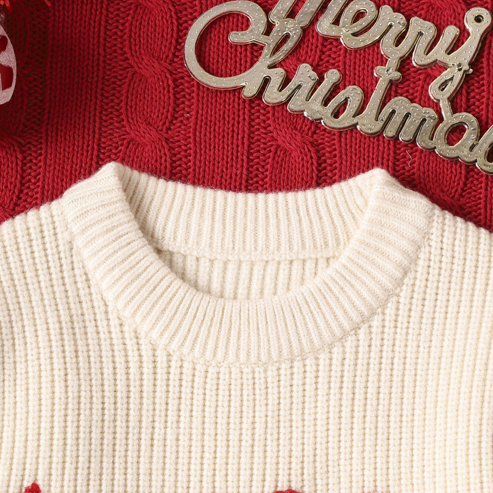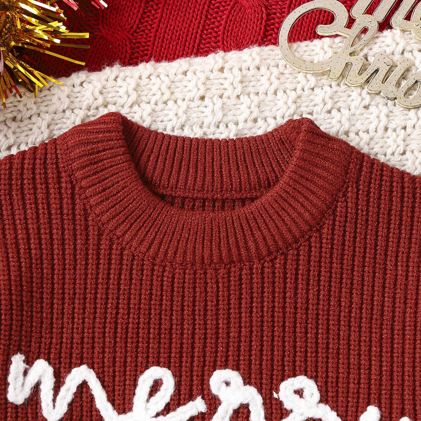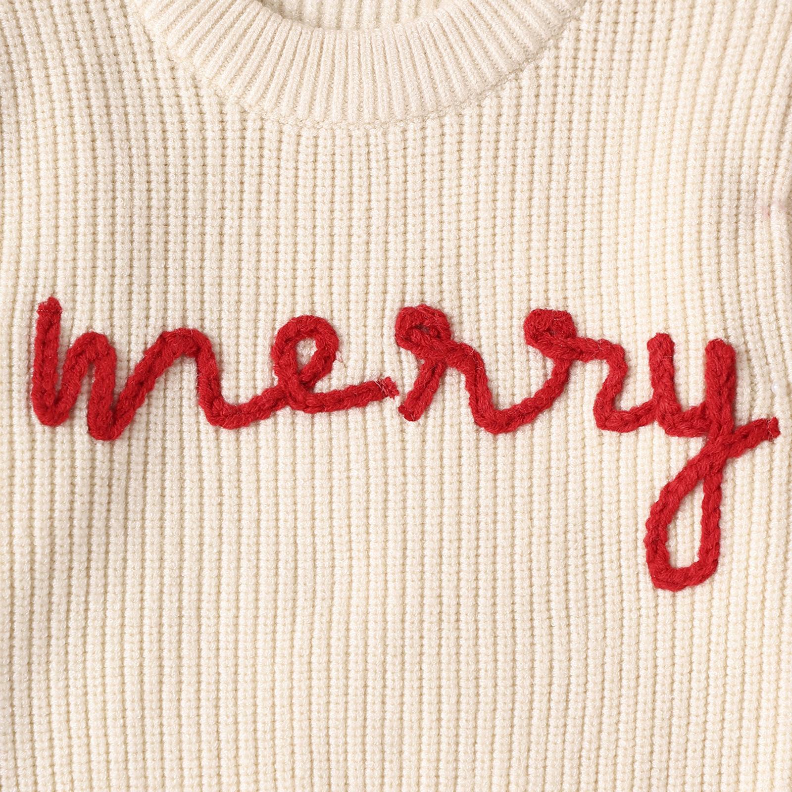 원제조사 크리스마스 아동복 수출용 유아복 레트로 스타일 'merry' 자수 보온 스웨터