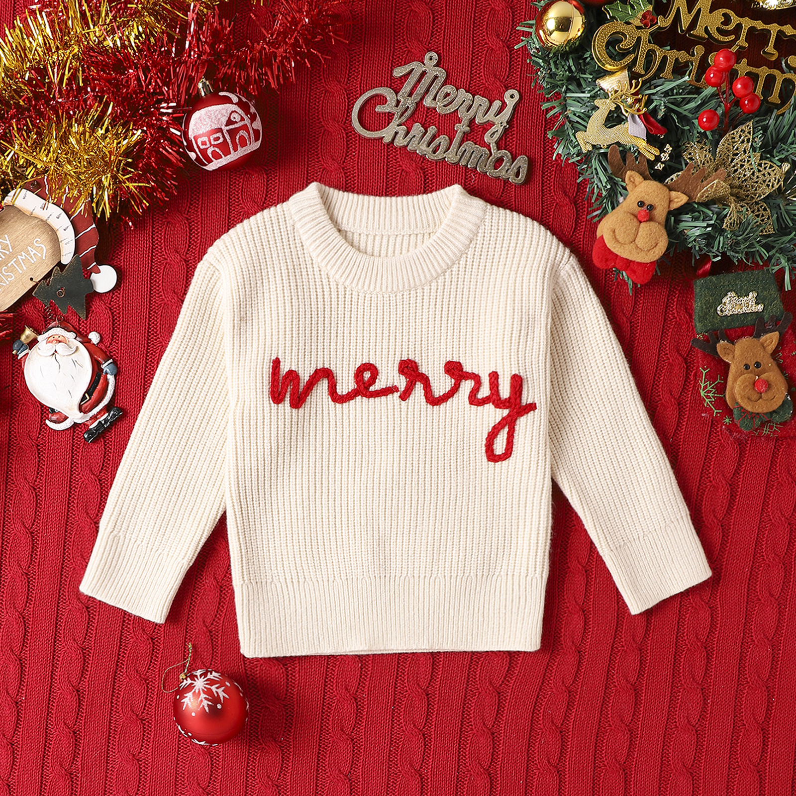 원제조사 크리스마스 아동복 수출용 유아복 레트로 스타일 'merry' 자수 보온 스웨터스토어 가기