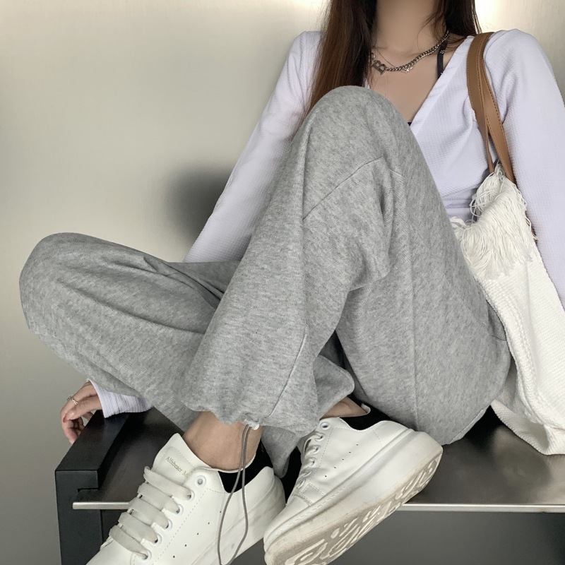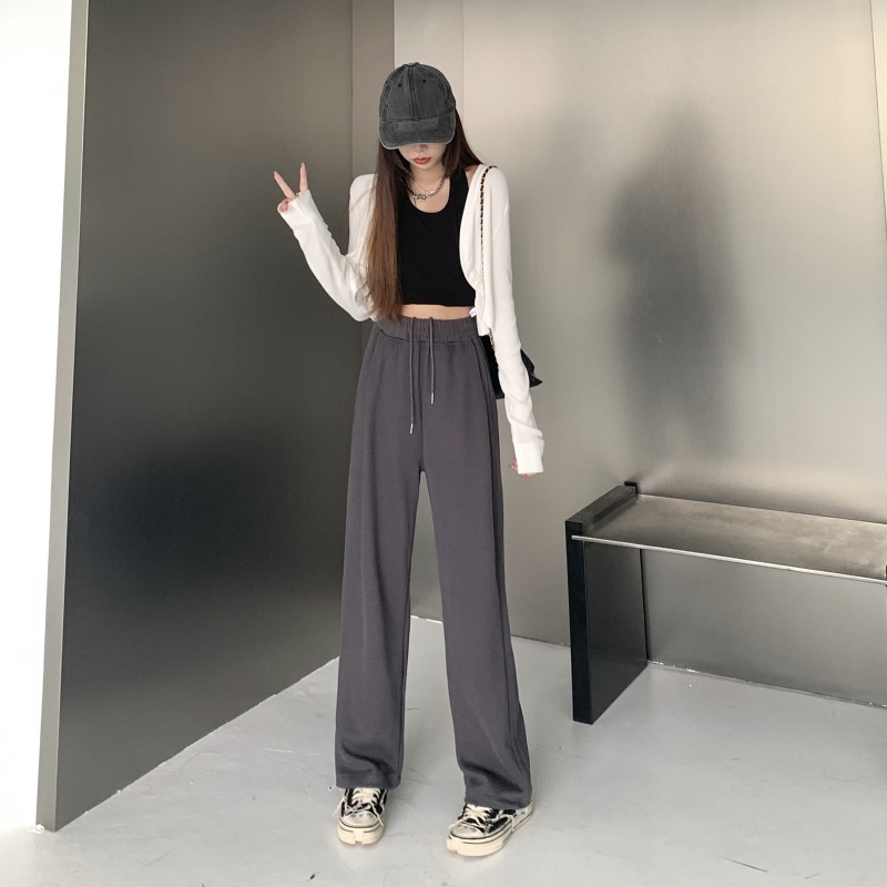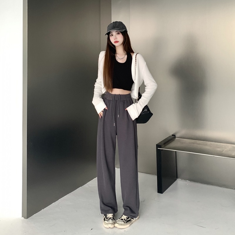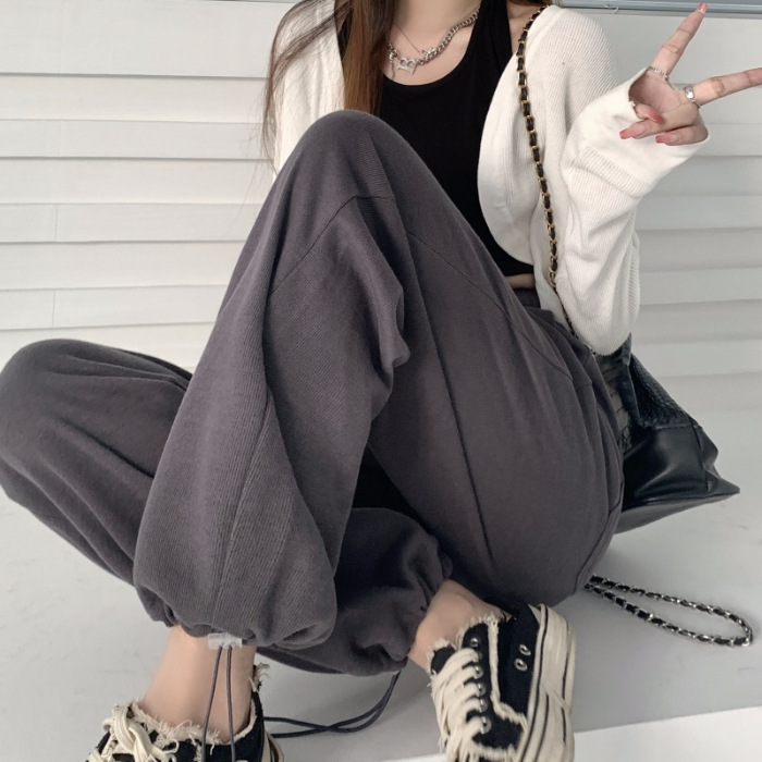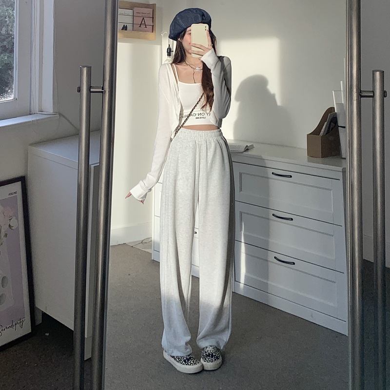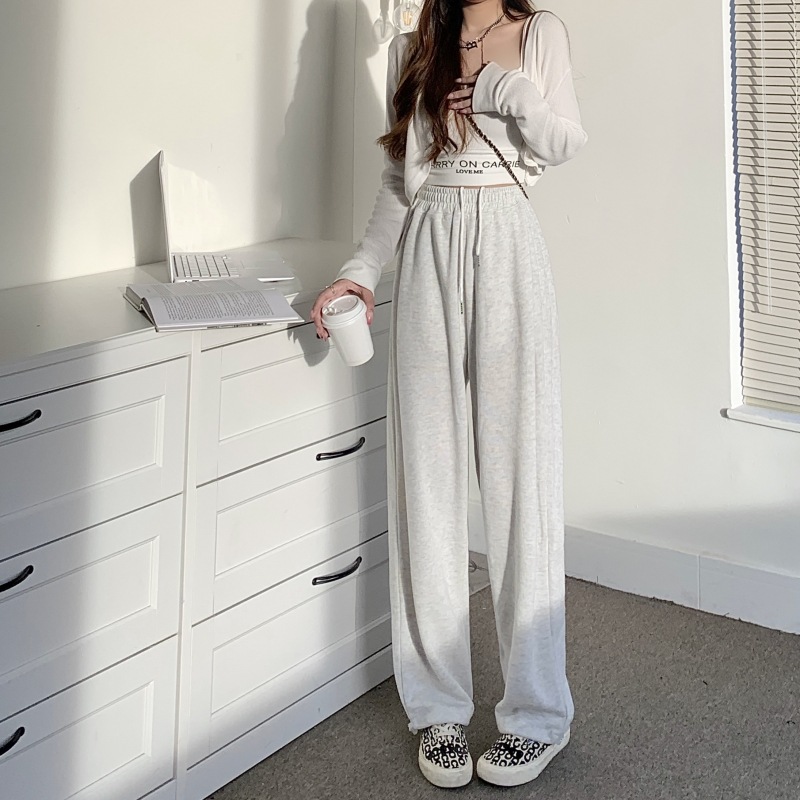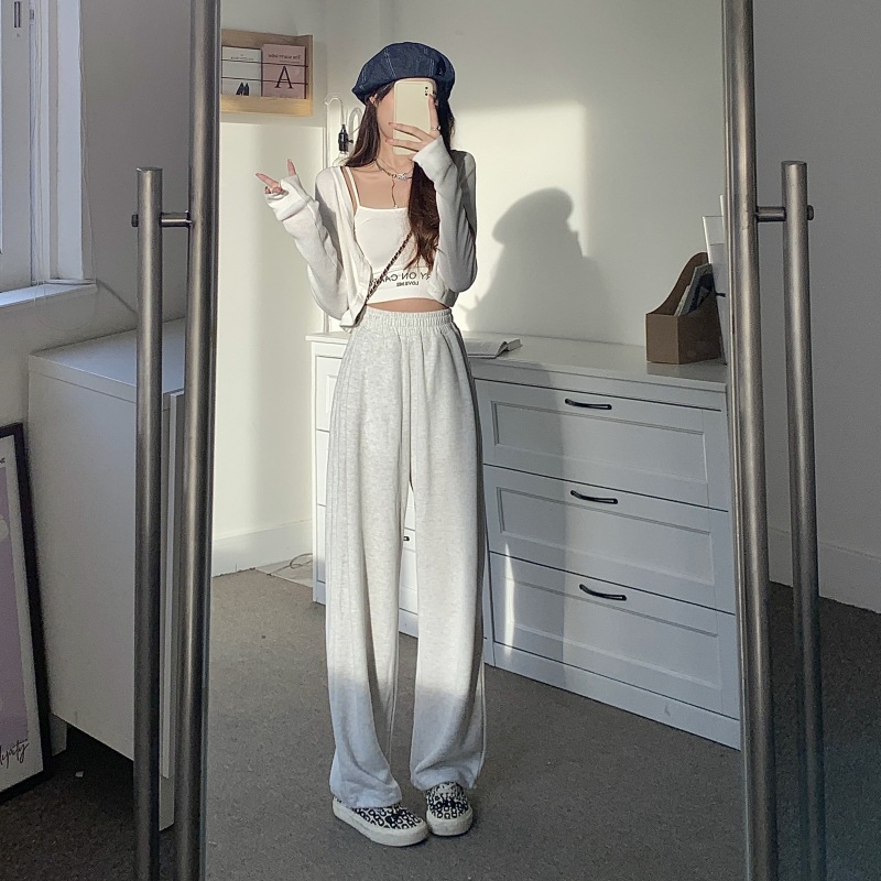 미국 회색 스포츠 바지 여성의 가을과 겨울 2023 새로운 느슨한 슬림 핏 핫 걸 스트리트 스웨트 팬츠