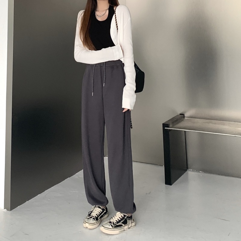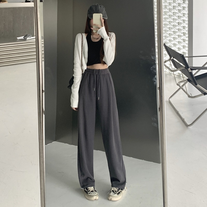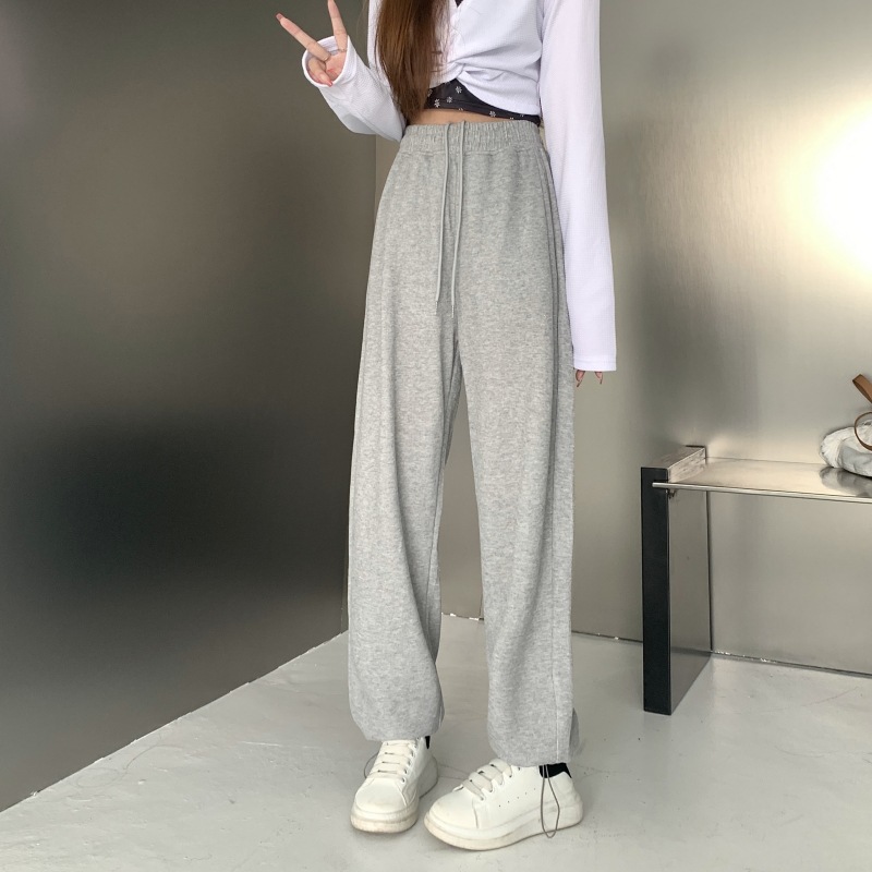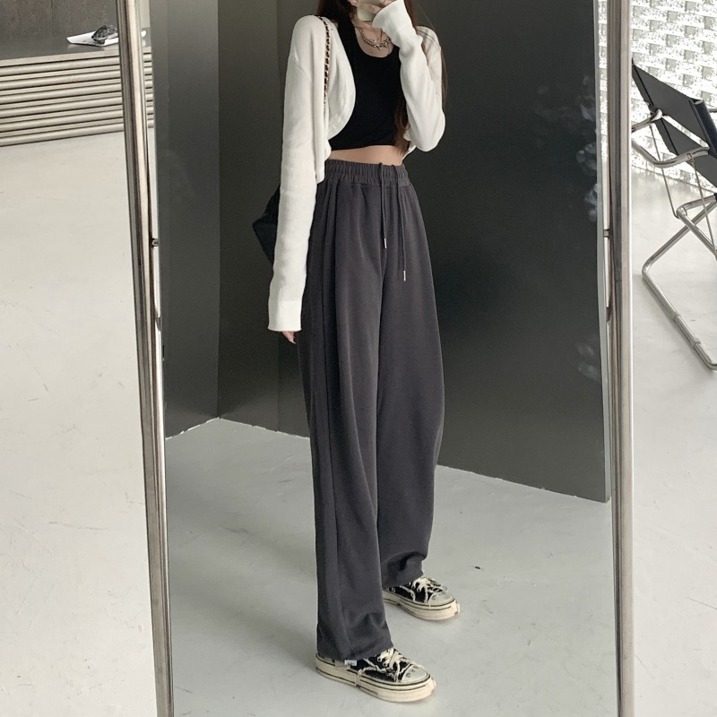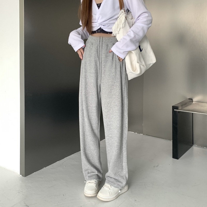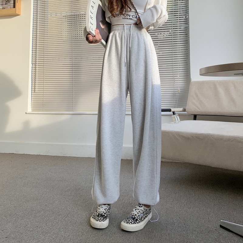미국 회색 스포츠 바지 여성의 가을과 겨울 2023 새로운 느슨한 슬림 핏 핫 걸 스트리트 스웨트 팬츠