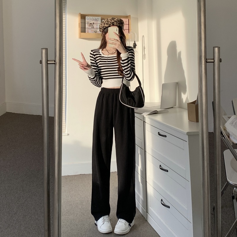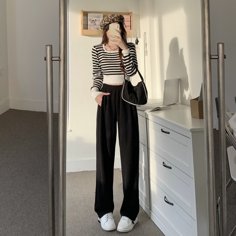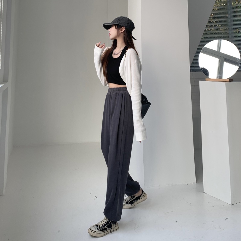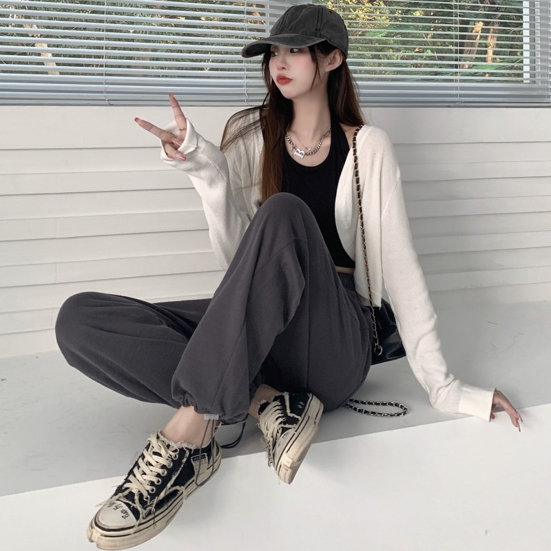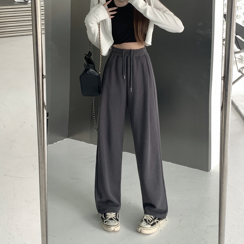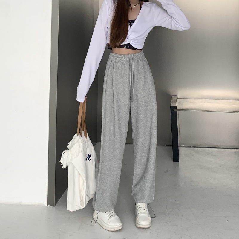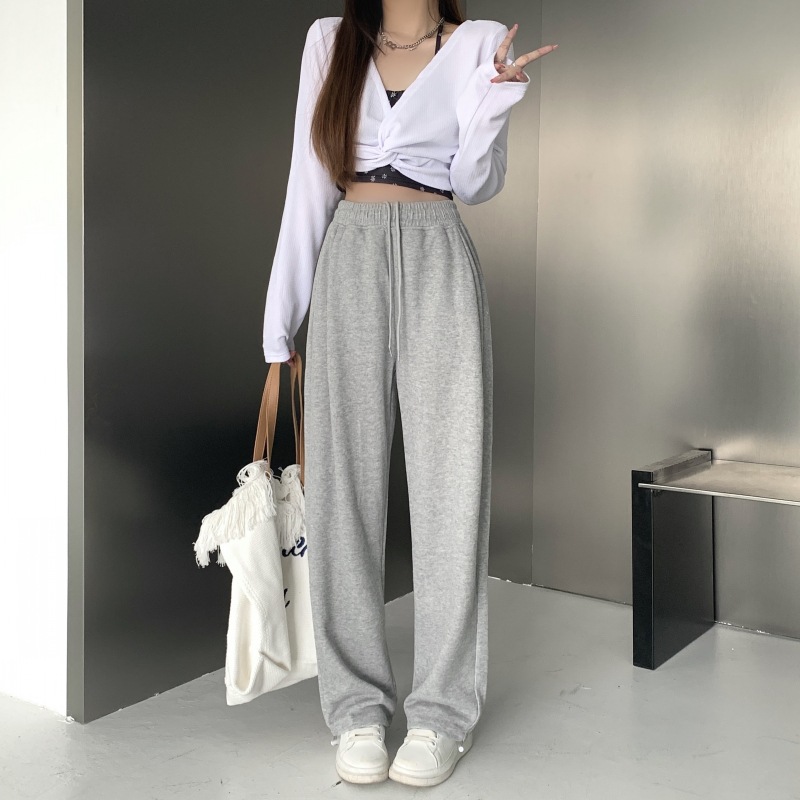 미국 회색 스포츠 바지 여성의 가을과 겨울 2023 새로운 느슨한 슬림 핏 핫 걸 스트리트 스웨트 팬츠