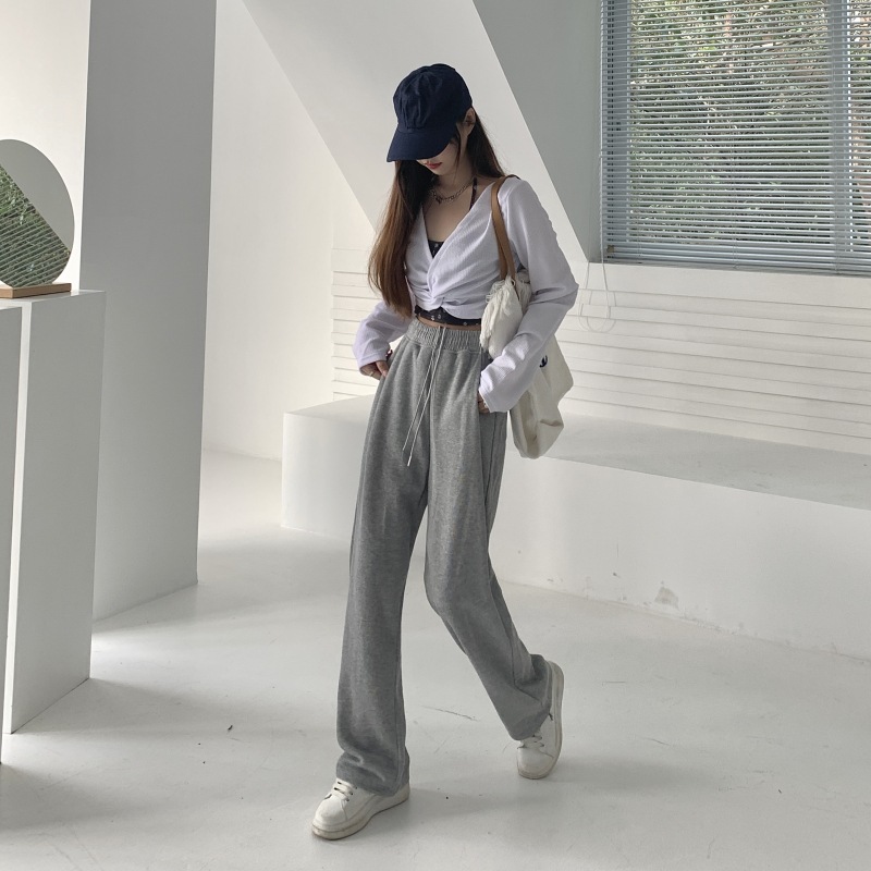 미국 회색 스포츠 바지 여성의 가을과 겨울 2023 새로운 느슨한 슬림 핏 핫 걸 스트리트 스웨트 팬츠스토어 가기