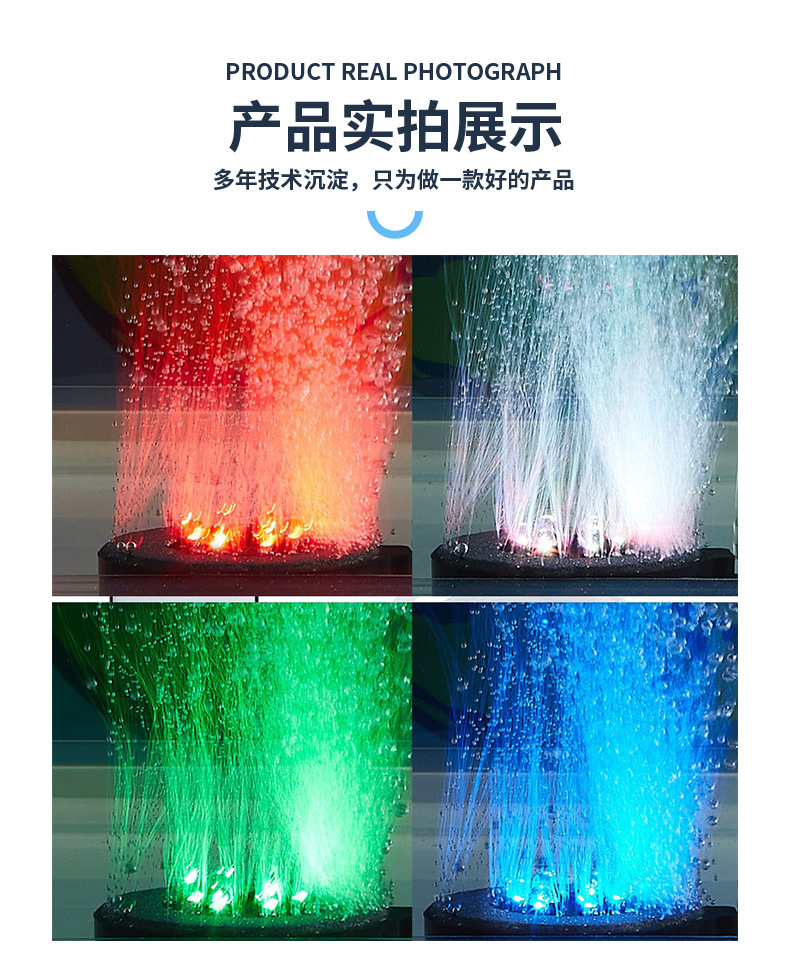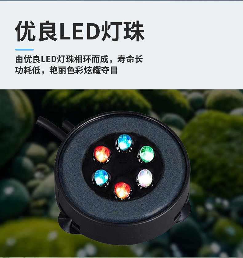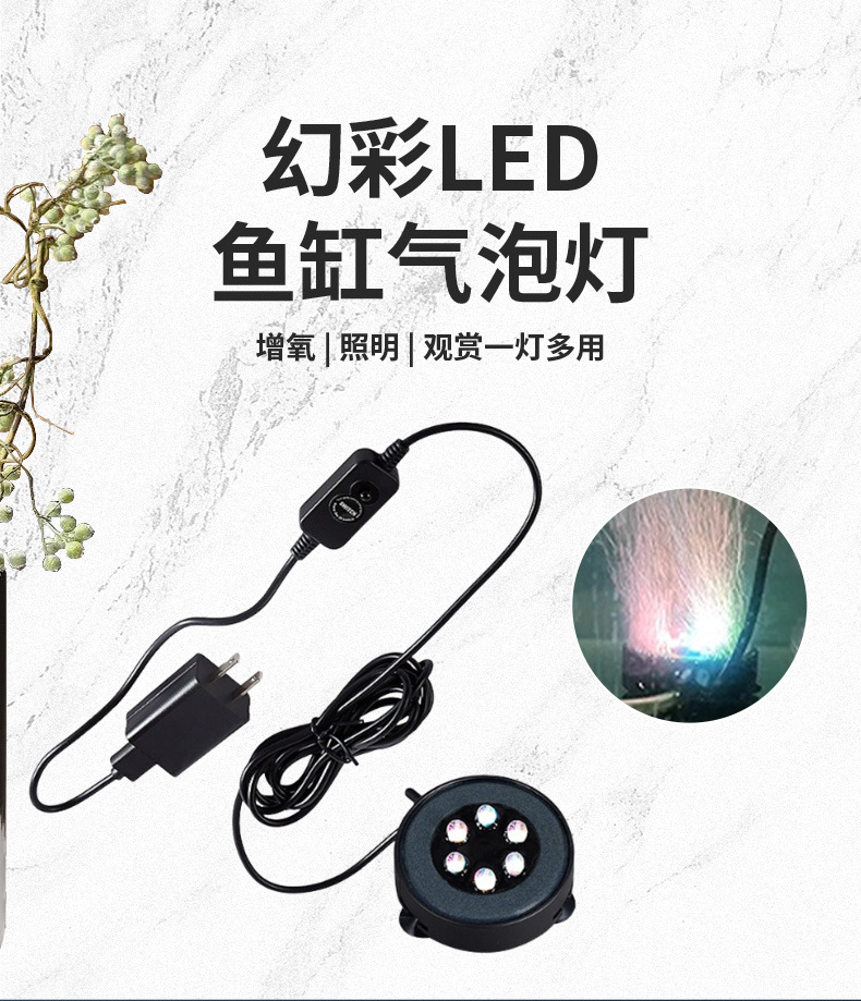 本气泡灯需要接气泵使用,建议搭配3W以上的气泵,使用前将产品浸泡水中,再接气泵使用,出气效果更佳。