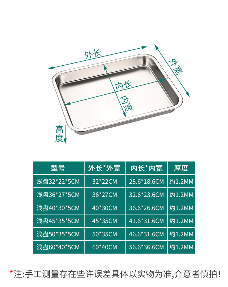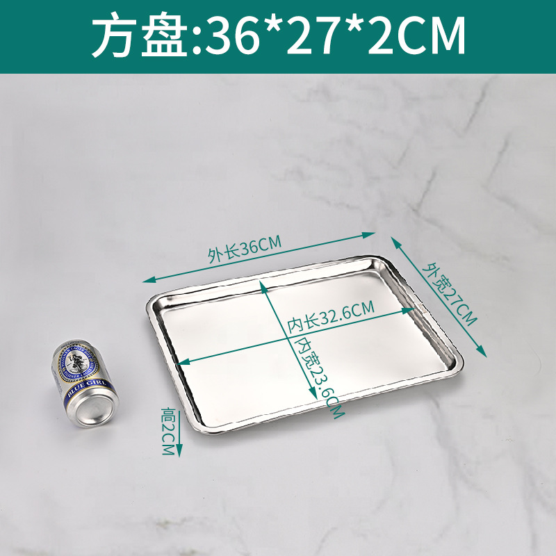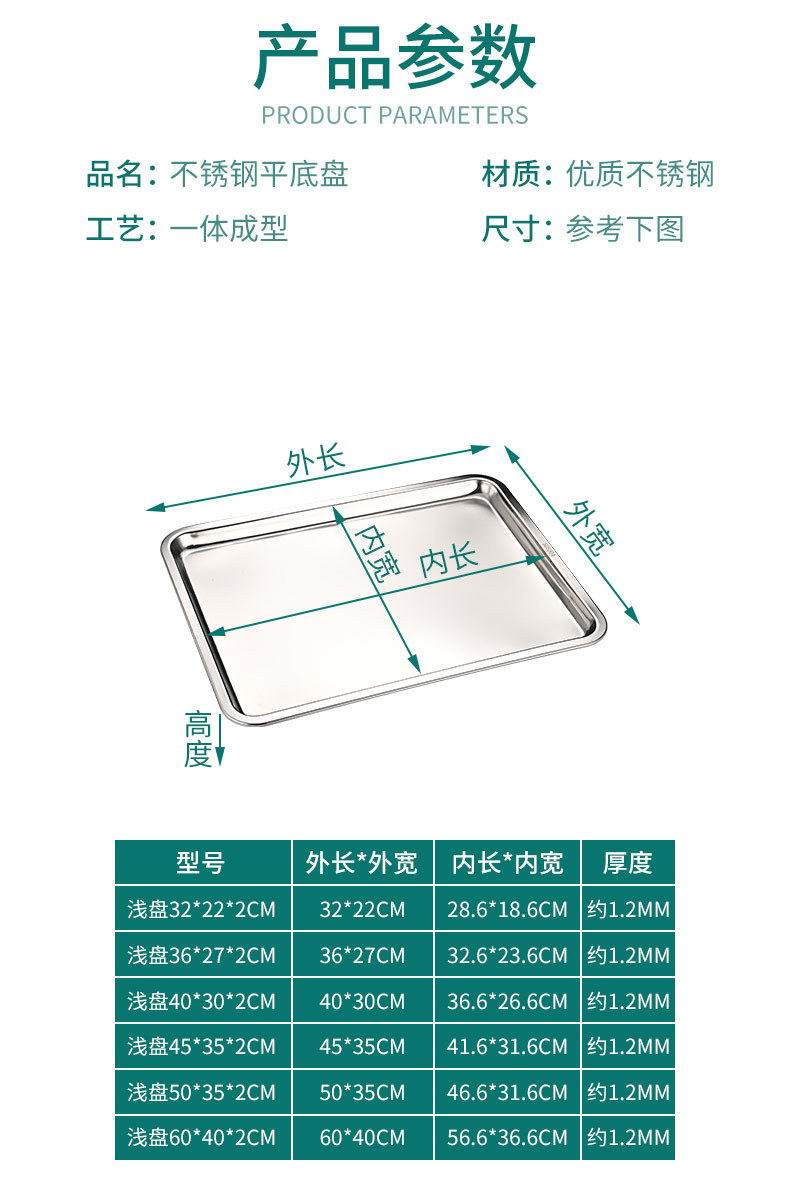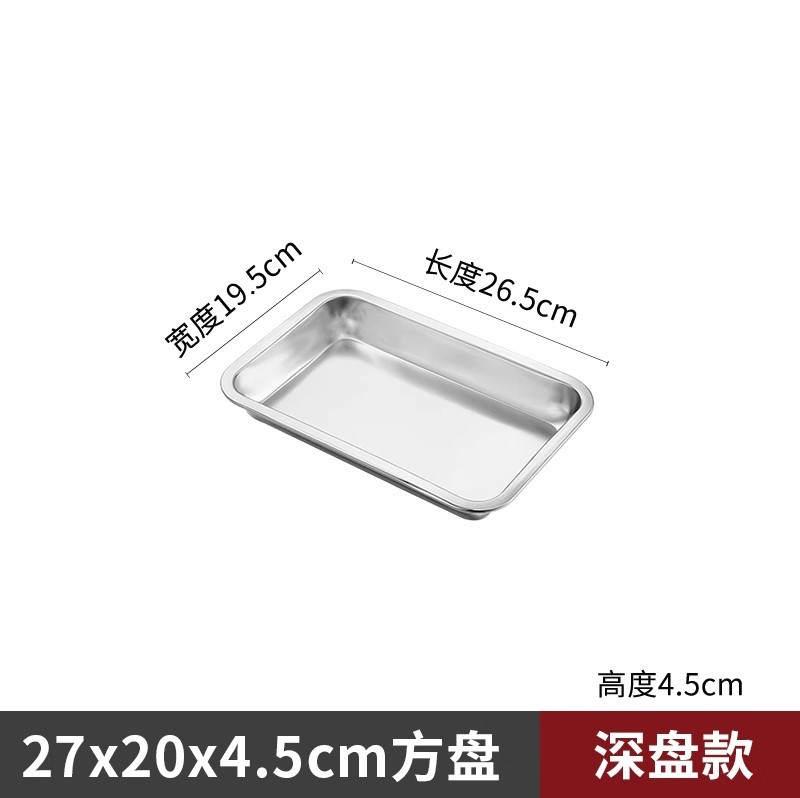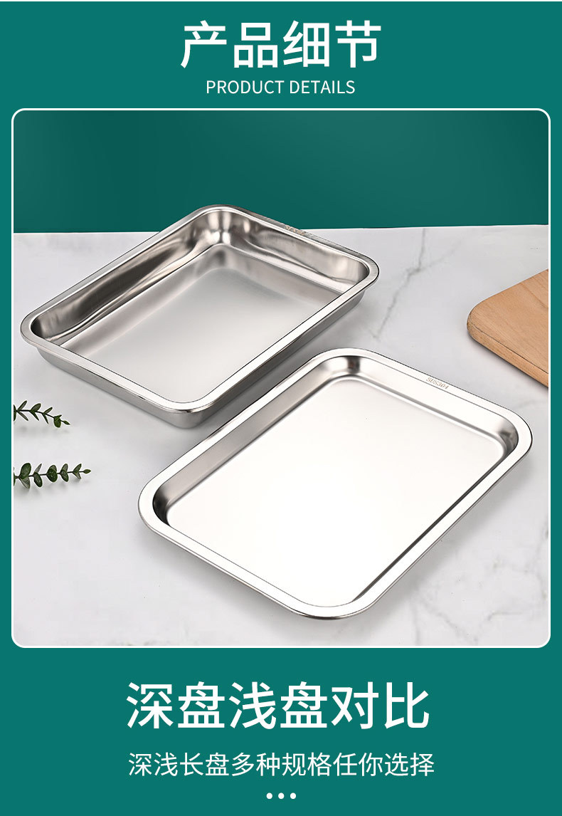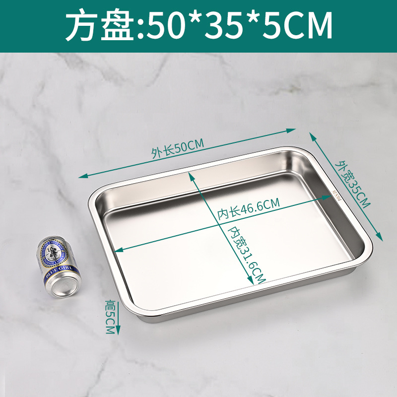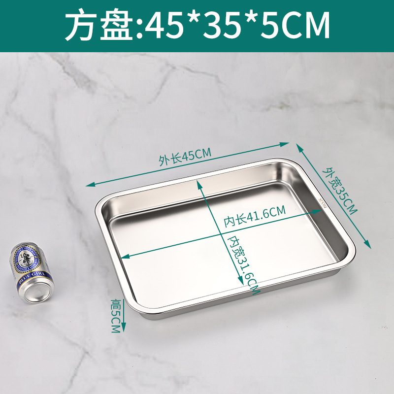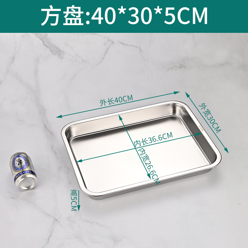 304 스테인레스 스틸 트레이 직사각형 순수 평면 플레이트 상업용 주방 베이킹 구운 생선 접시 두껍게 찐 쌀 접시스토어 가기