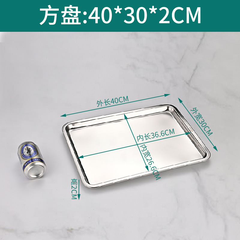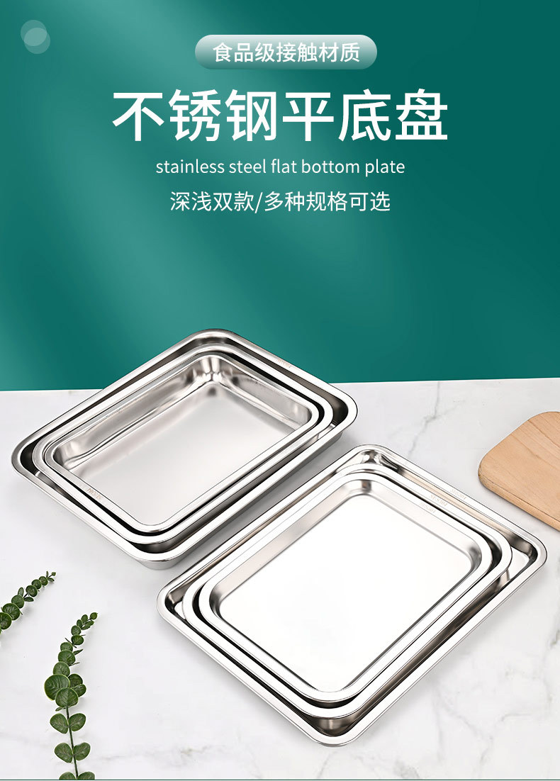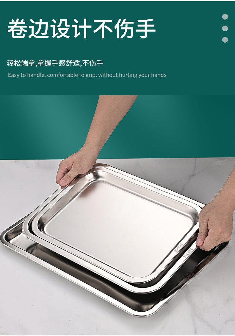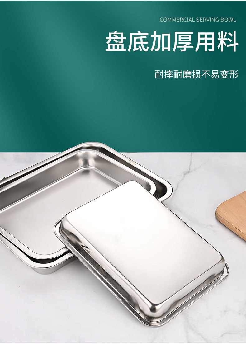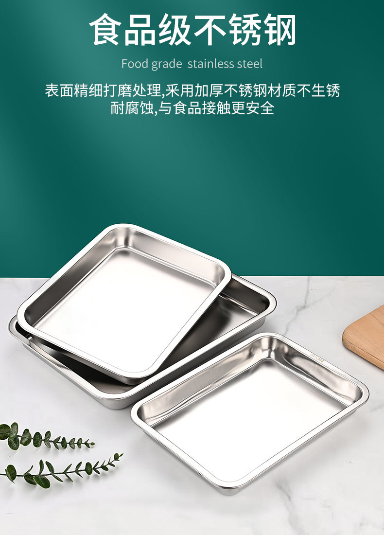 304 스테인레스 스틸 트레이 직사각형 순수 평면 플레이트 상업용 주방 베이킹 구운 생선 접시 두껍게 찐 쌀 접시
