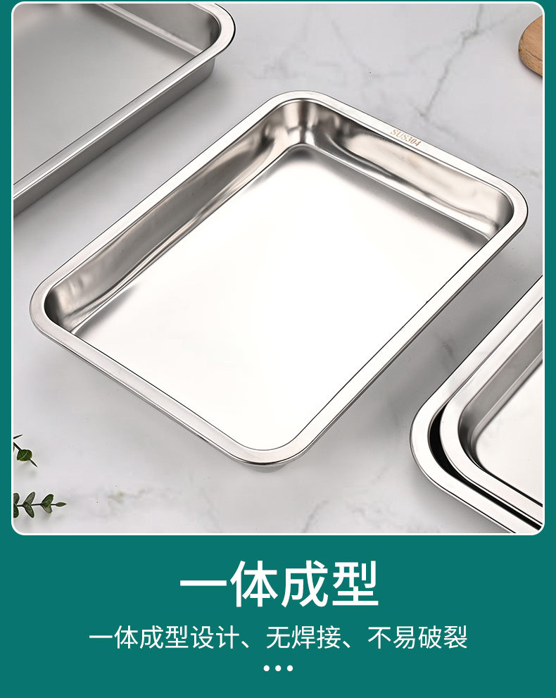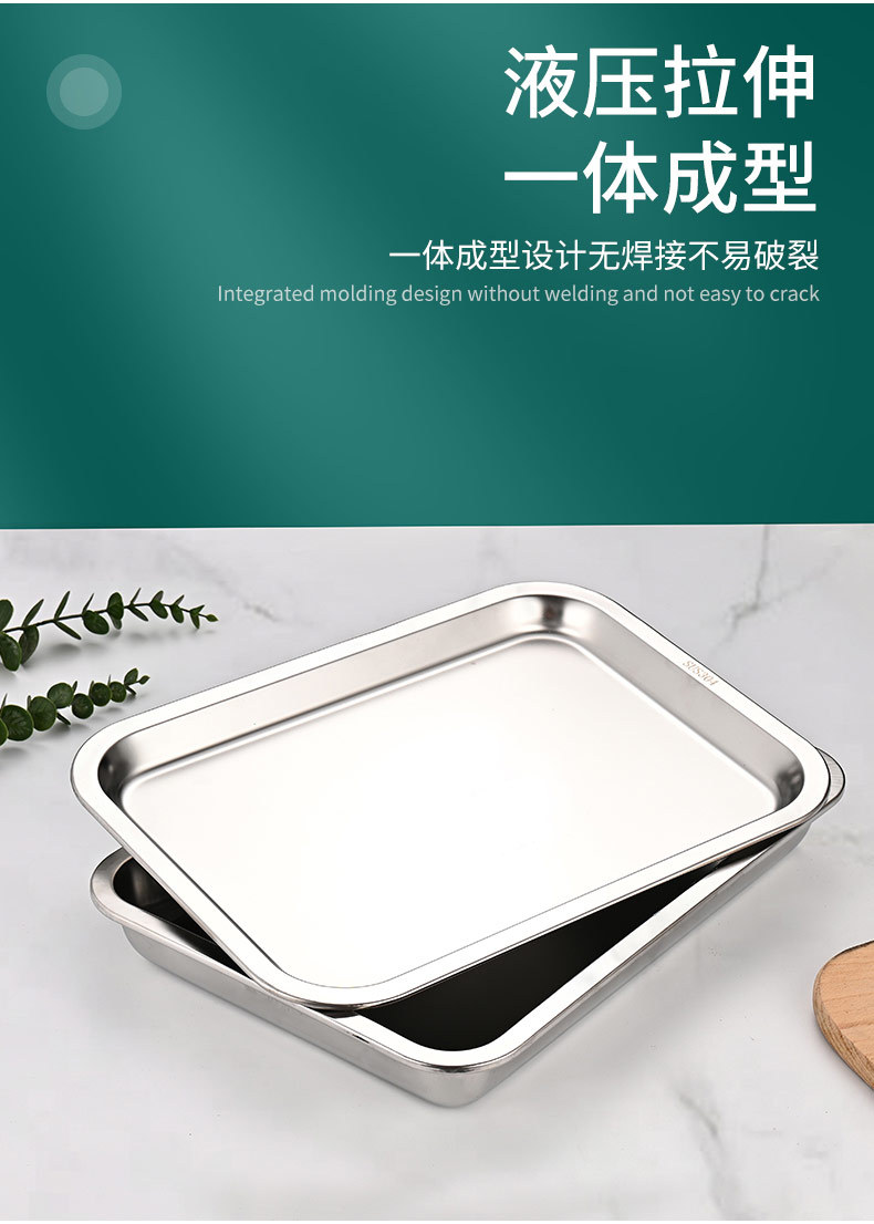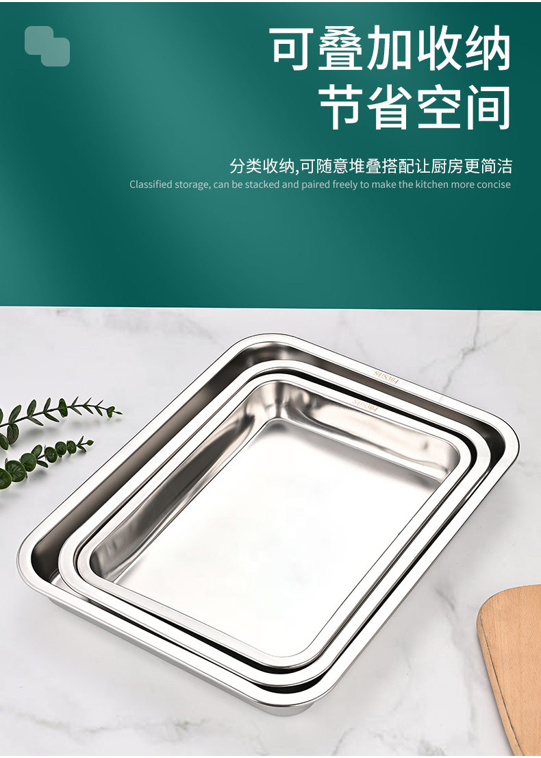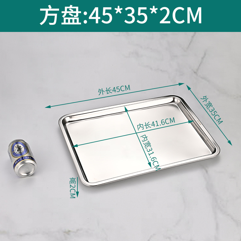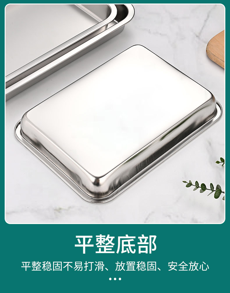 304 스테인레스 스틸 트레이 직사각형 순수 평면 플레이트 상업용 주방 베이킹 구운 생선 접시 두껍게 찐 쌀 접시