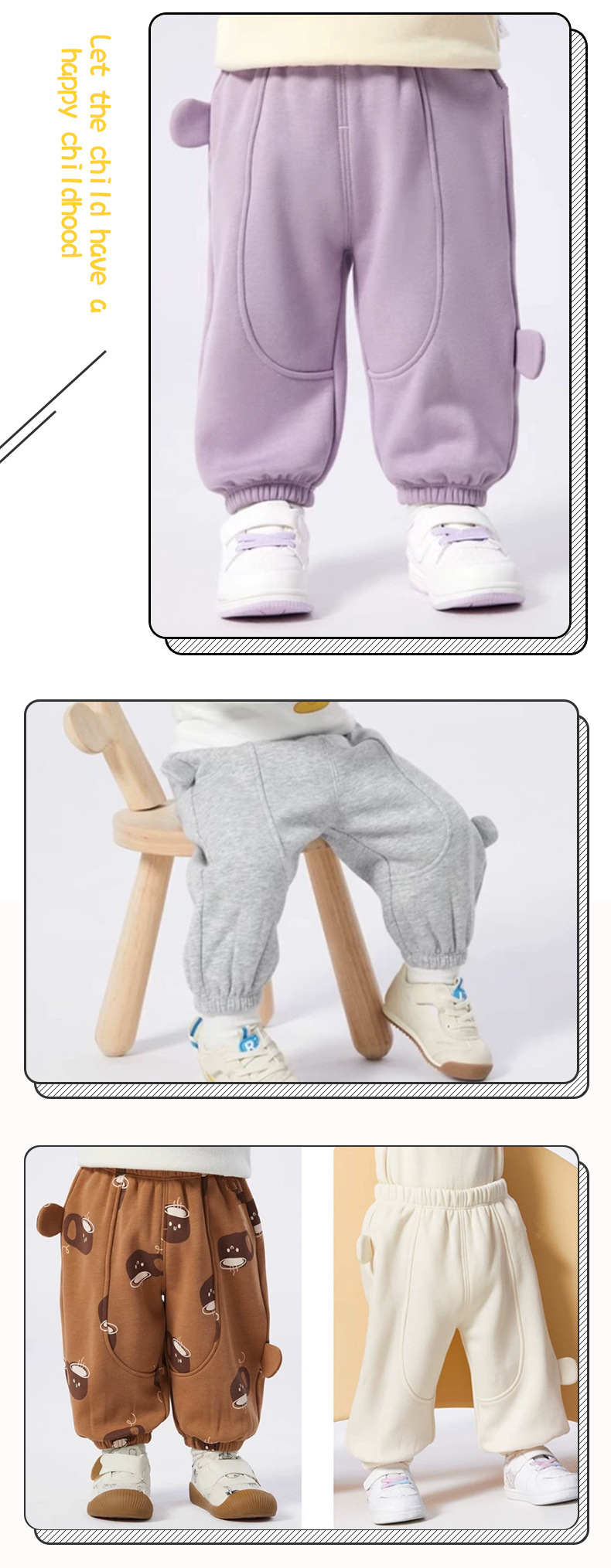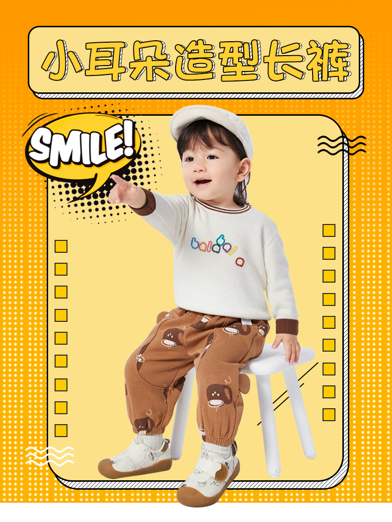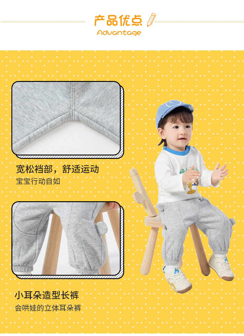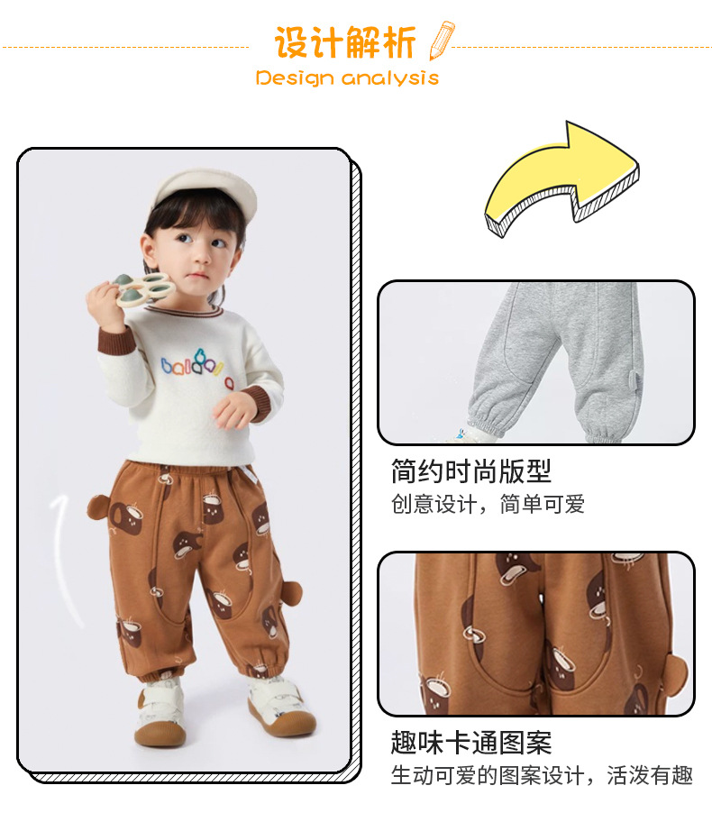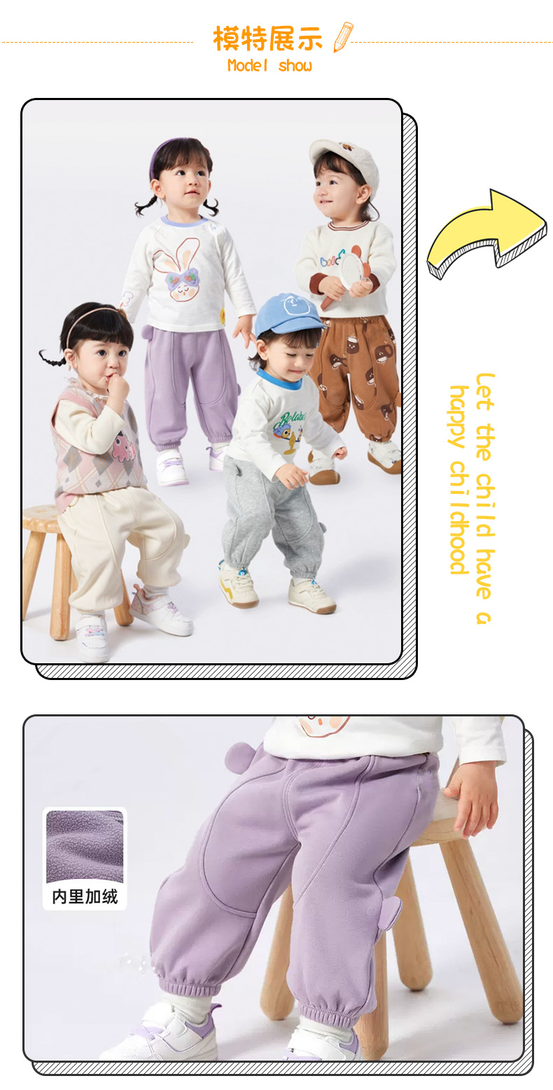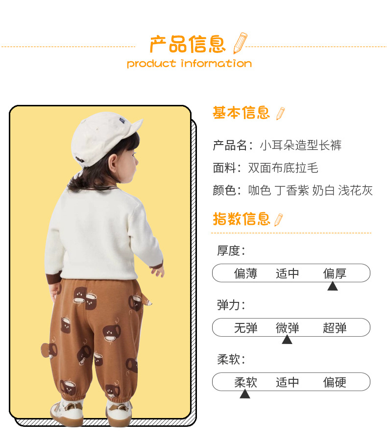 작은 귀 바지 아기 캐주얼 바지 기모 유행 소녀 가을 2023 새로운 소년 바지