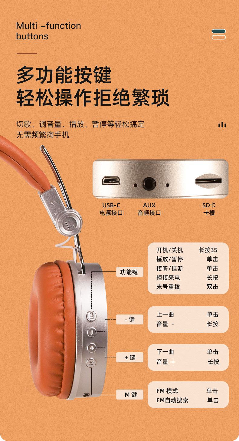 국경 간 새로운 인기 온라인 유명인 미국 복고풍 헤드셋 무선 블루투스 헤드셋 긴 내구성 낮은 대기 시간 HIFI 휴대용스토어 가기