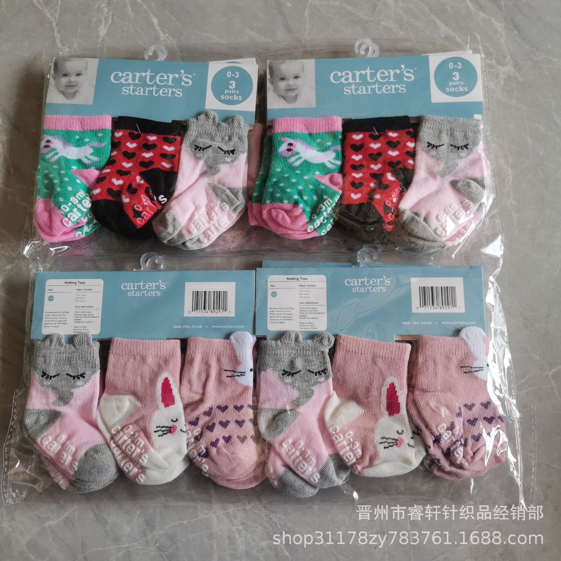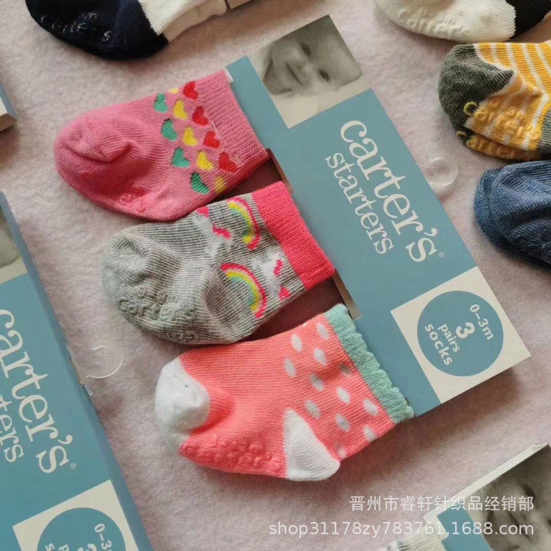카터 카터 가을과 겨울 아기 양말 면 양말 남녀 만화 어린이 양말 카드 3 쌍