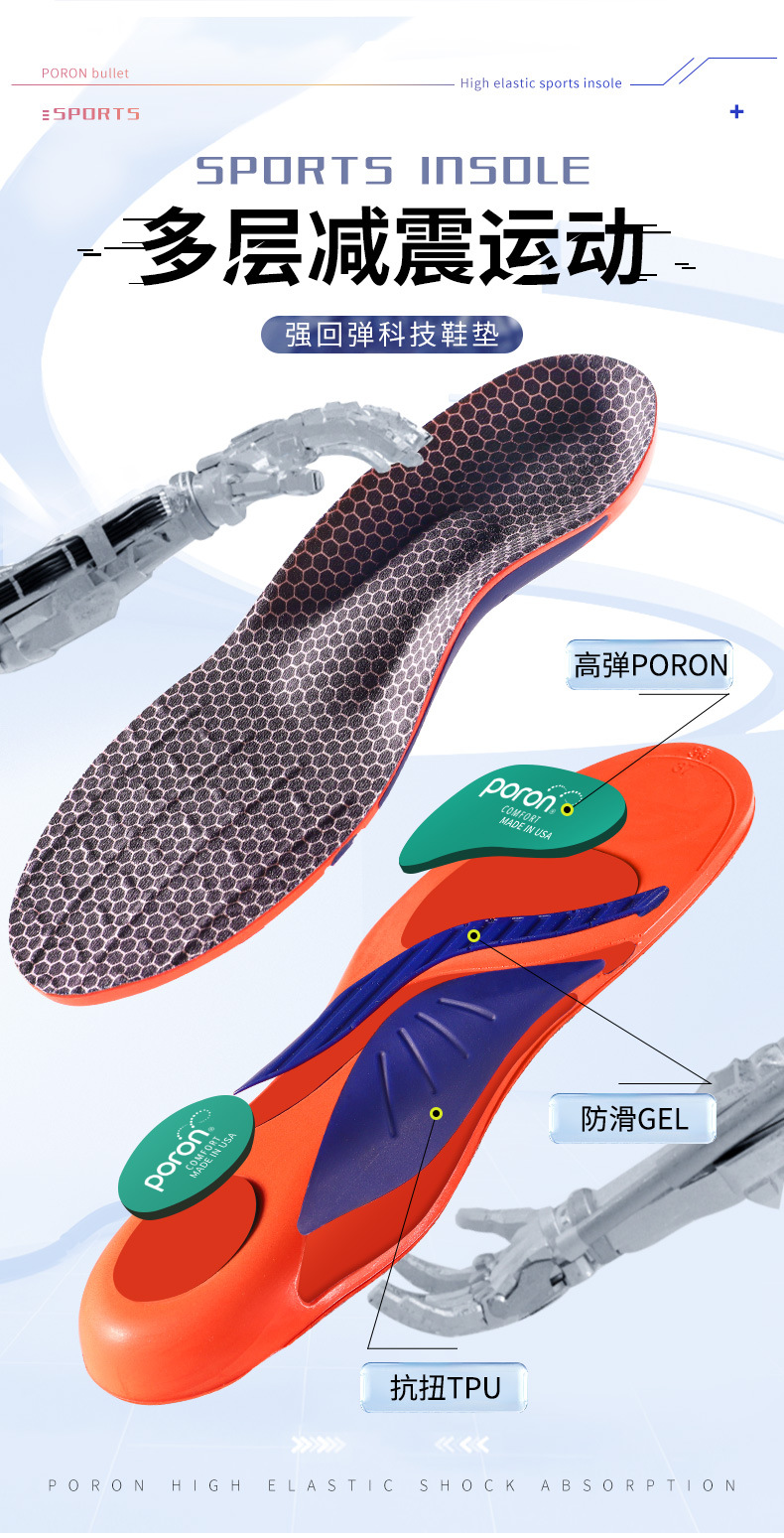 포론 충격 흡수 스포츠 안창 남자 여자 땀 흡수 통기성 농구 아치 지원 프로 러닝 인솔스토어 가기