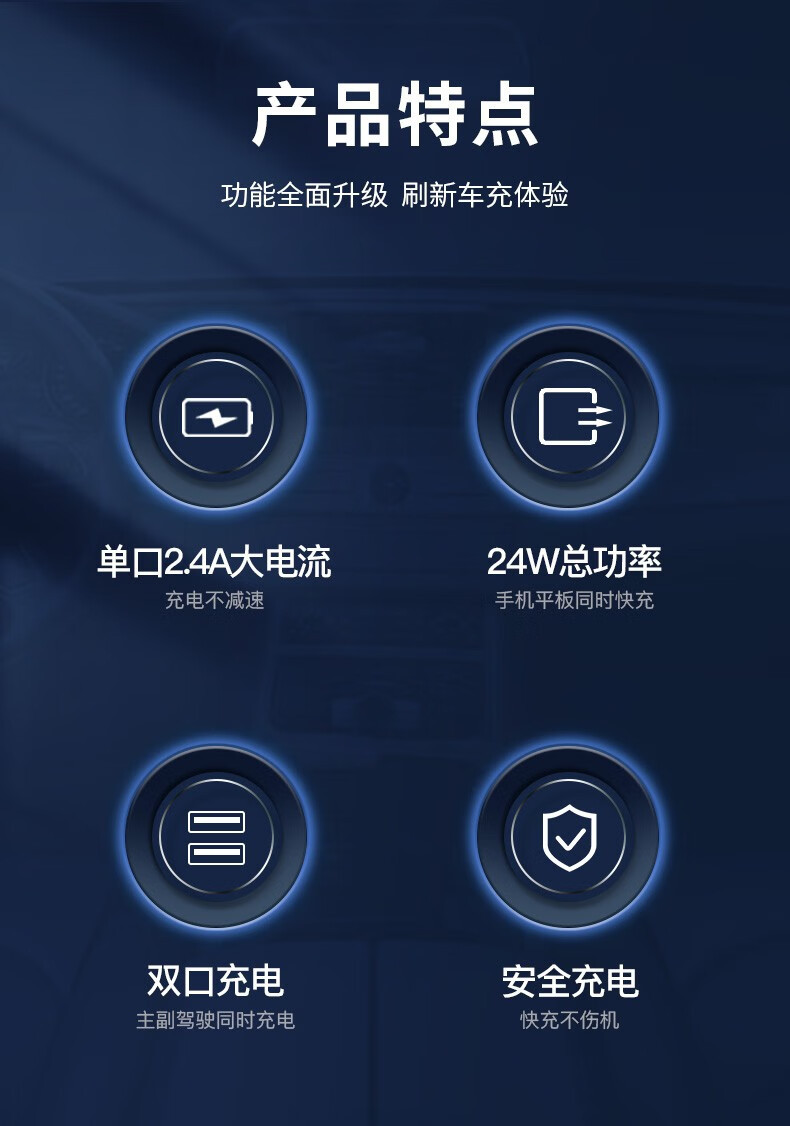 필립스 자동차 충전기 DLP4105 빠른 충전 24W 하나 두 자동차 휴대 전화 usb 담배 라이터 컴팩트
