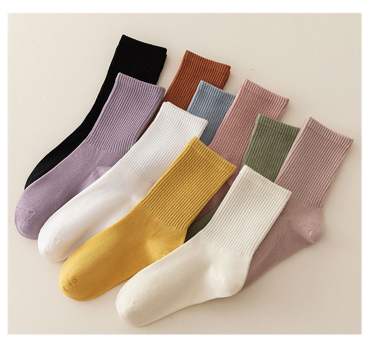 순수한면 양말 여성의 봄과 가을 얇은 면 양말 면화 여성용 캐주얼 안티 필링 중반 송아지 길이 양말 Zhuji 여성용 양말 도매스토어 가기