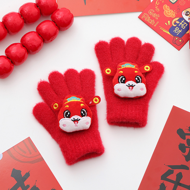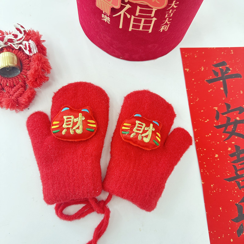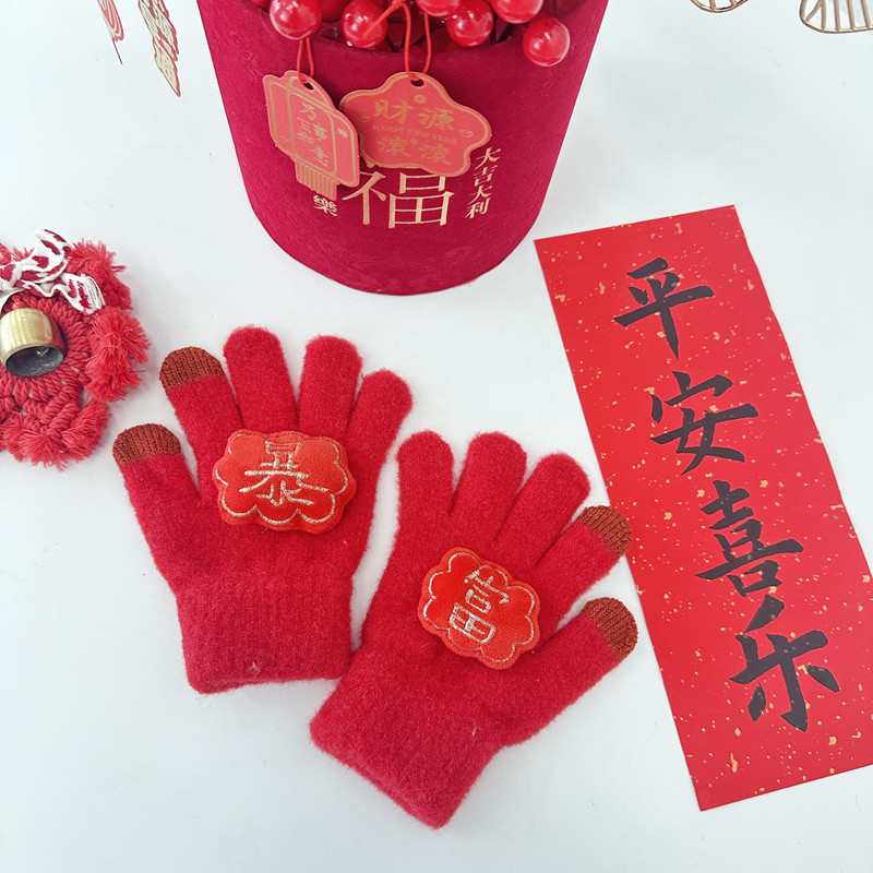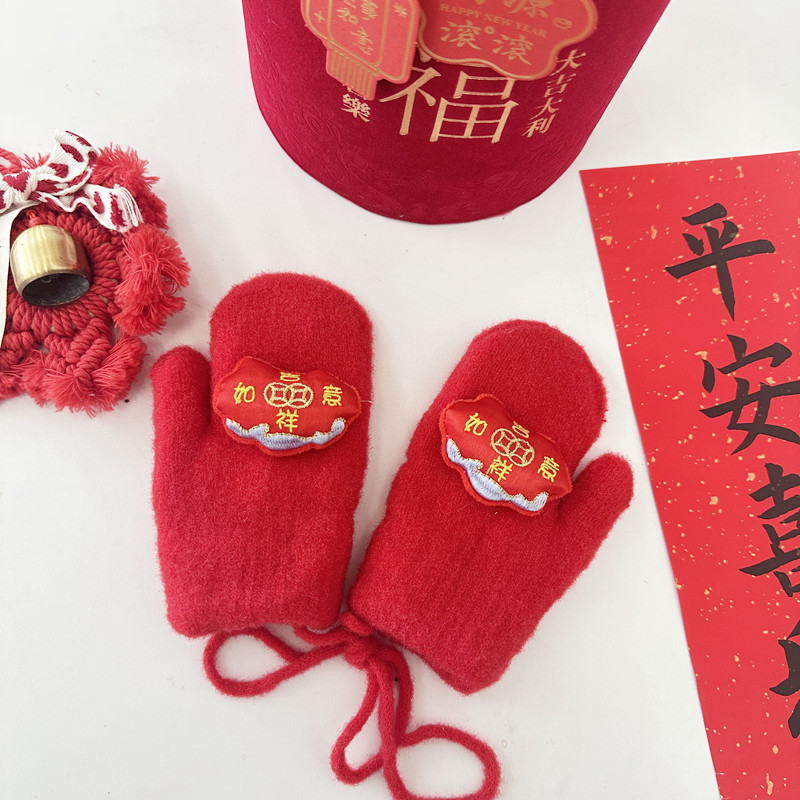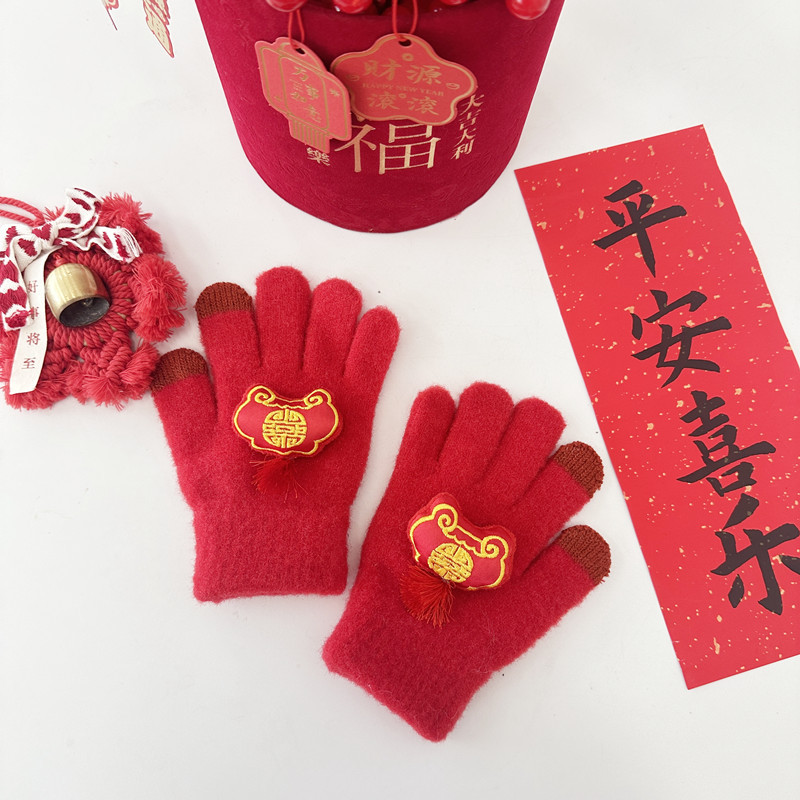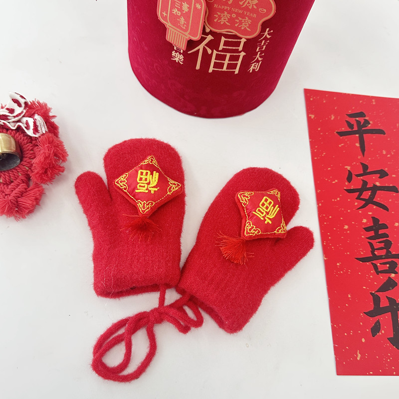 2024年大红新年款儿童手套