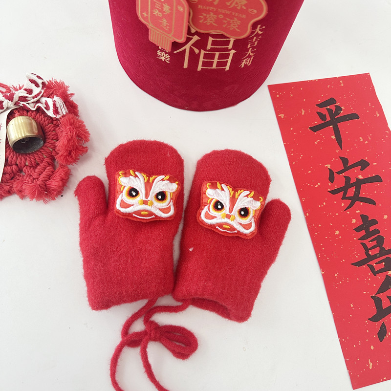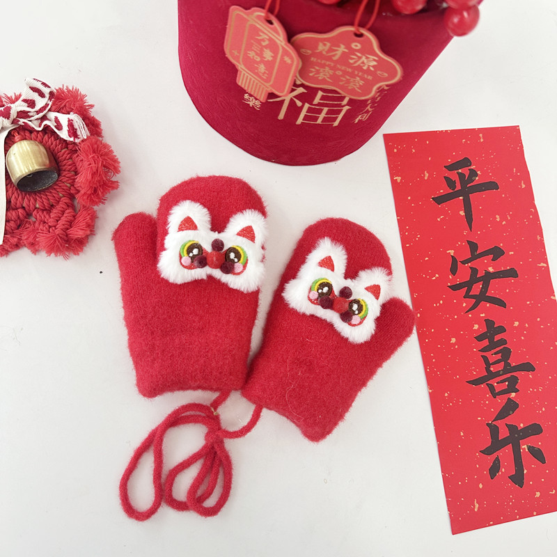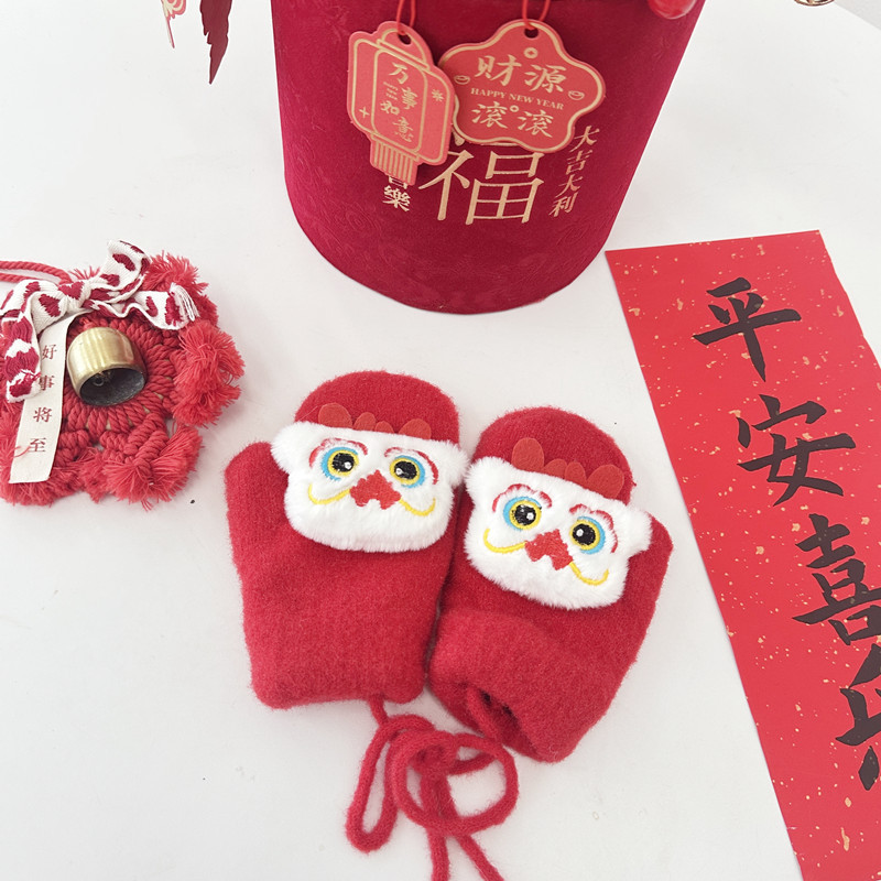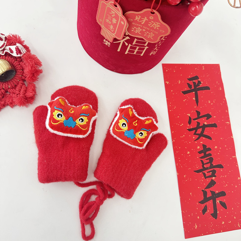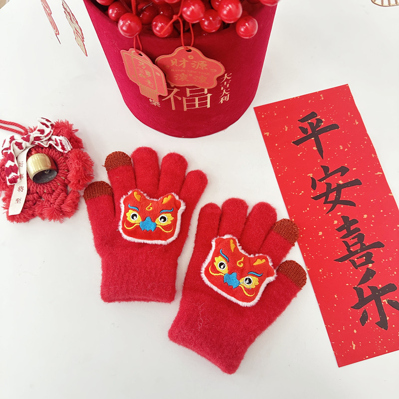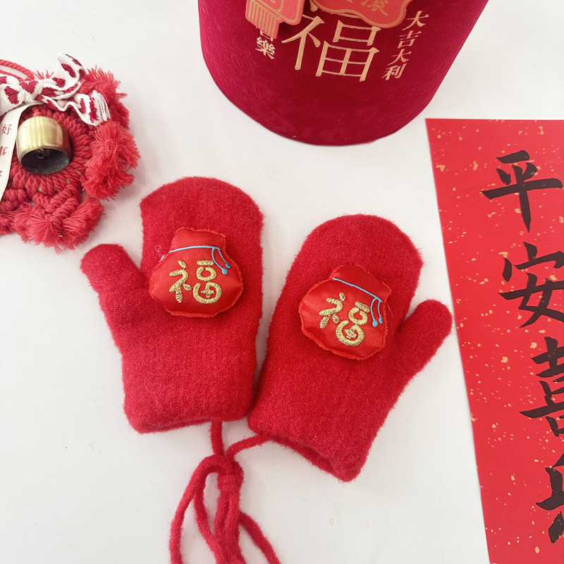 2024年大红新年款儿童手套