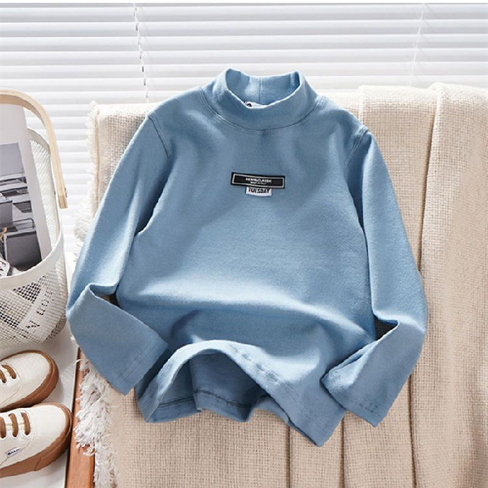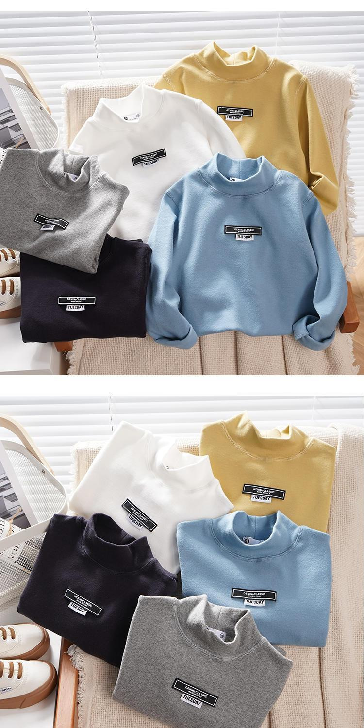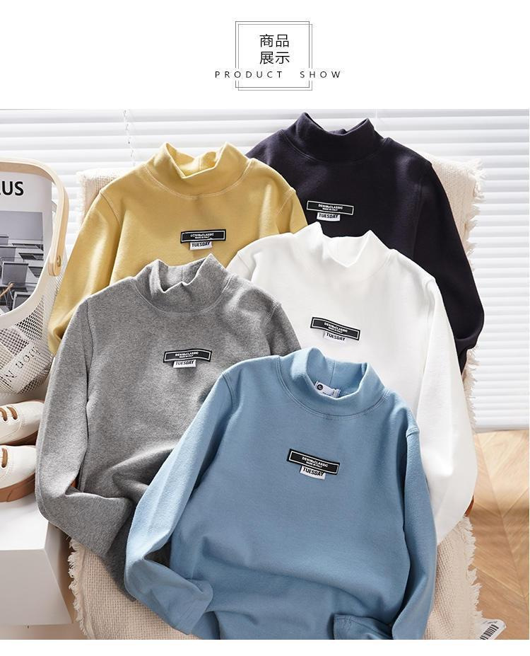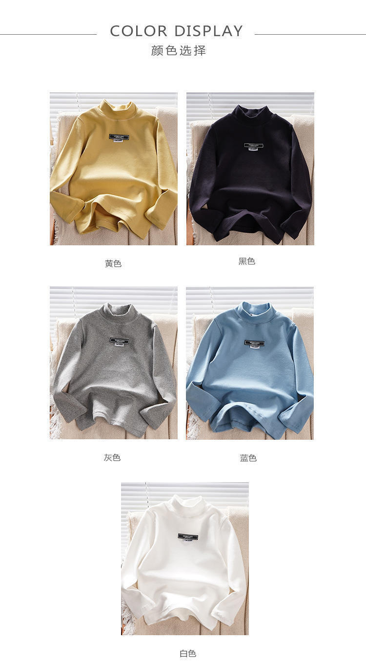 남학생 하프 터틀넥 바닥 셔츠 어린이 벨벳 긴 소매 따뜻한 탑 소년의 가을과 겨울 기모 두꺼운 미드 칼라 티셔츠