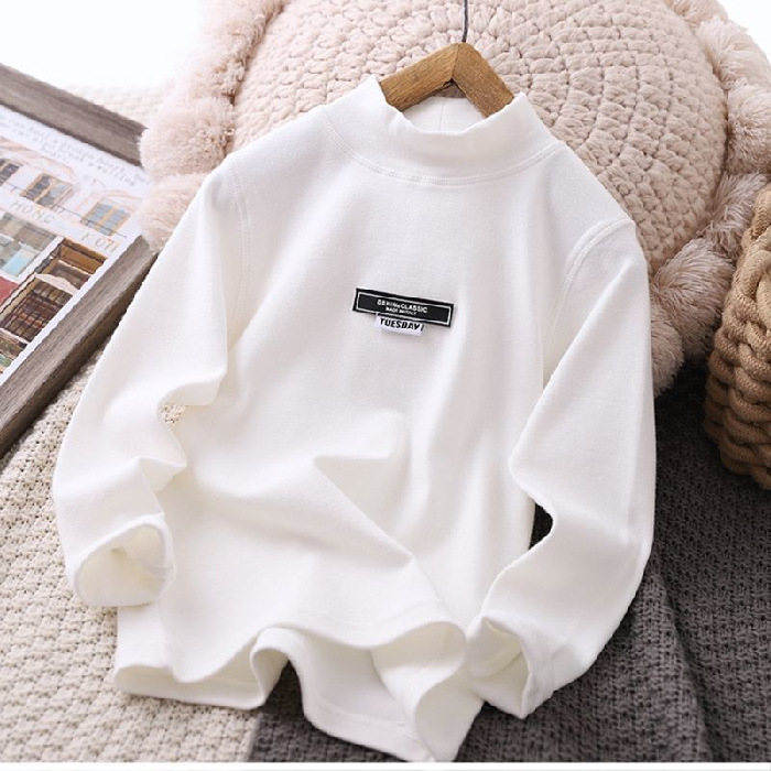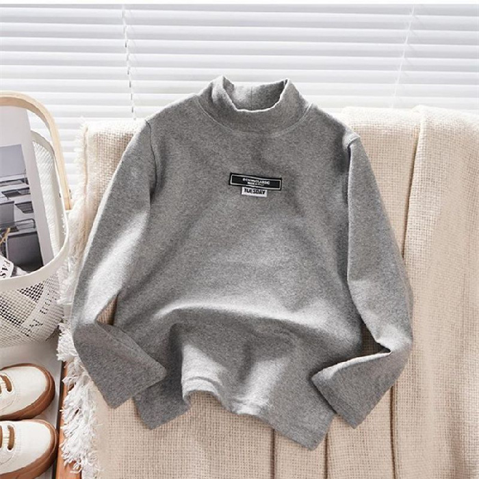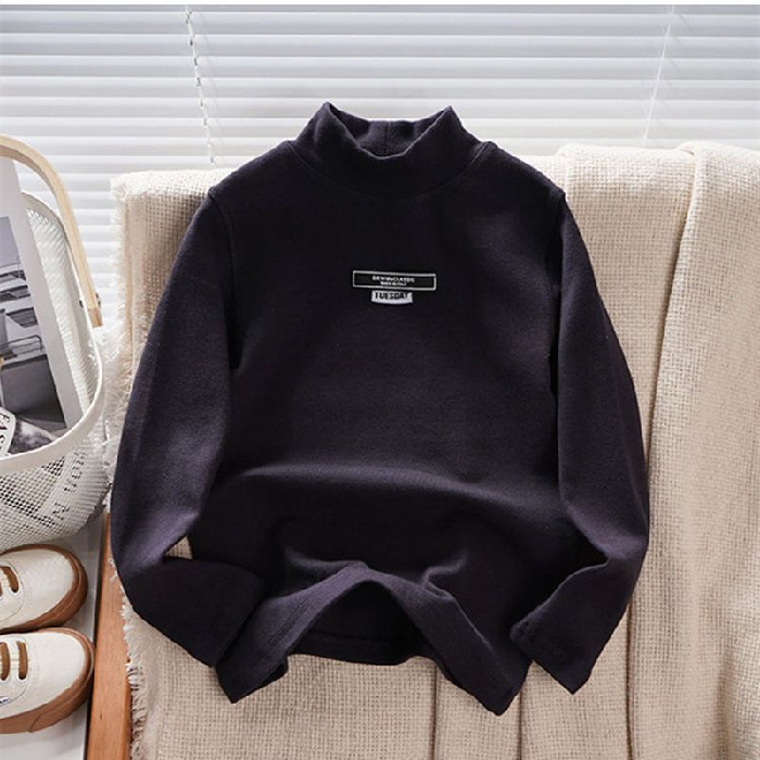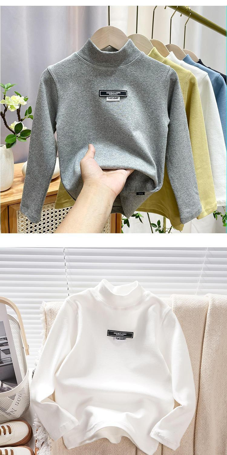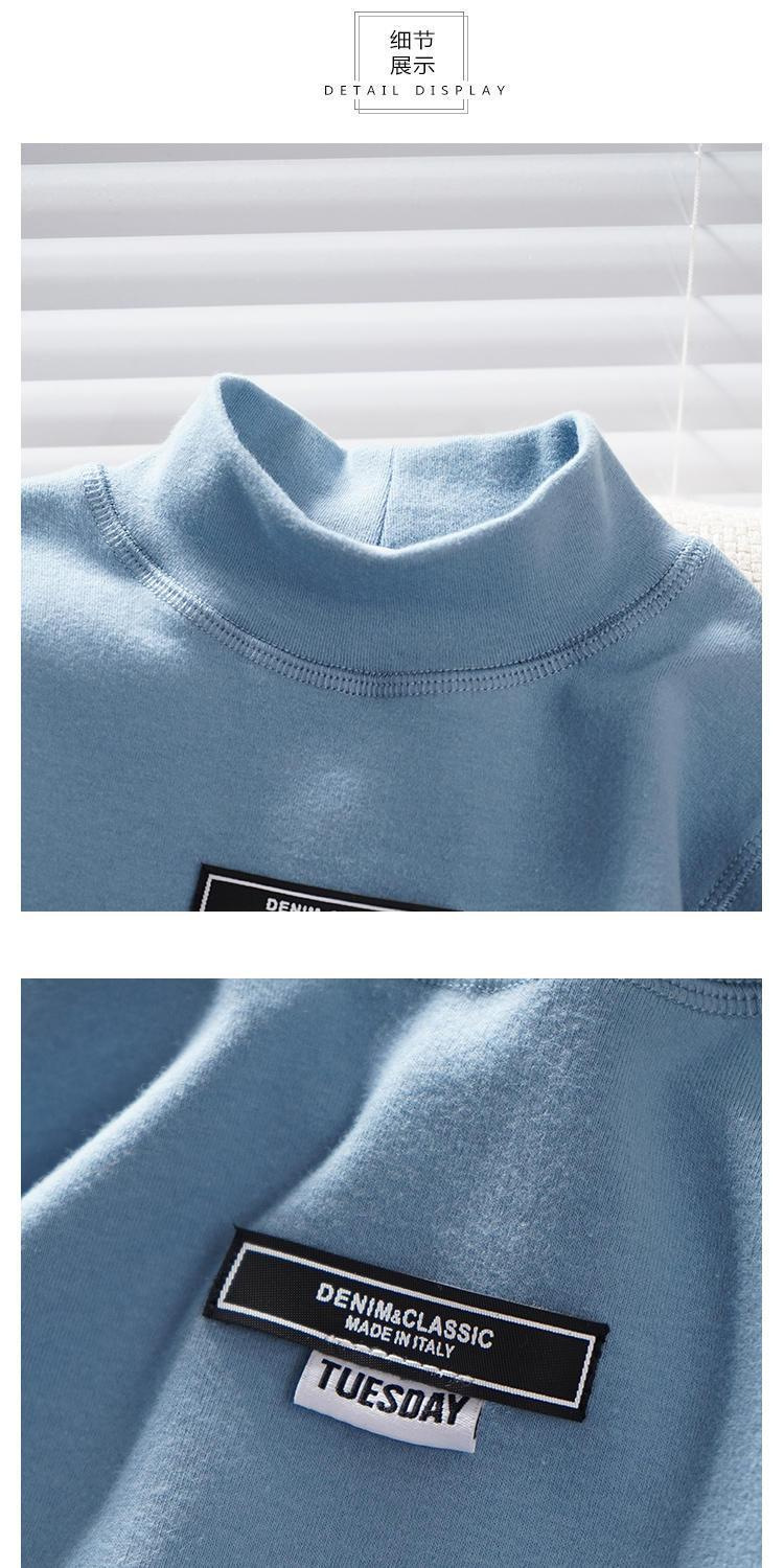 남학생 하프 터틀넥 바닥 셔츠 어린이 벨벳 긴 소매 따뜻한 탑 소년의 가을과 겨울 기모 두꺼운 미드 칼라 티셔츠