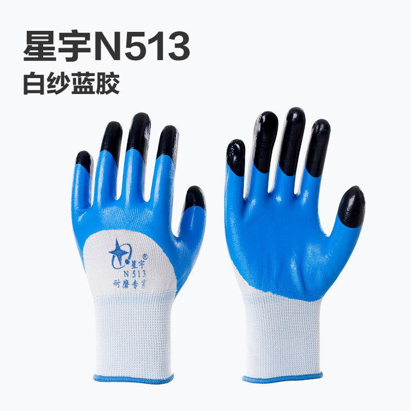 Xingyu N513 강화 손가락 내마모성 니트릴 고무 가죽 노동 보호 작업 보호 오일 방지 미끄럼 방지 방수 장갑스토어 가기