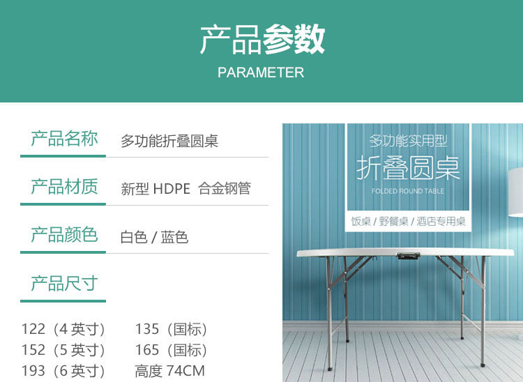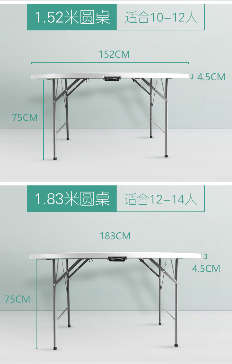 접이식 원형 테이블 레스토랑 야외 홈 호텔 레스토랑 거실 간단한 플라스틱 접이식 대형 원형 테이블 식탁과 의자스토어 가기