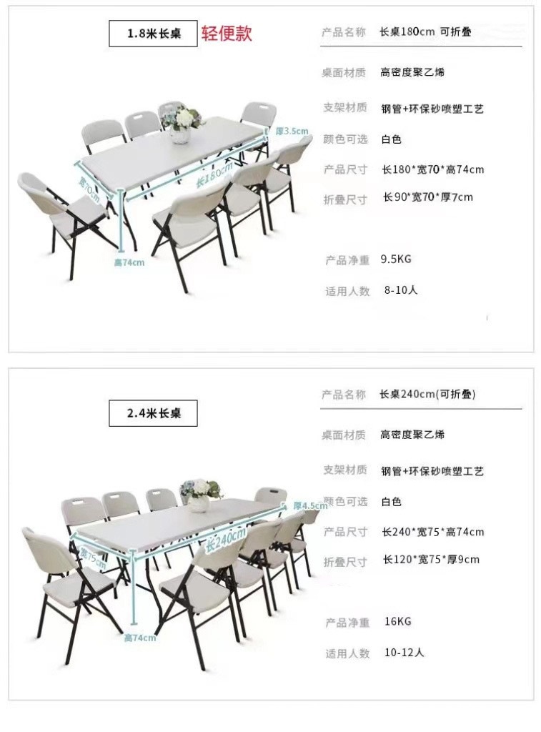 • 1.8m 다리 접이식 8-10인용 경량 화이트