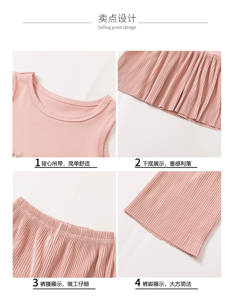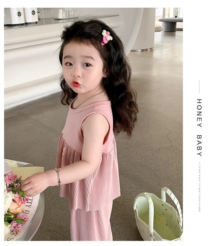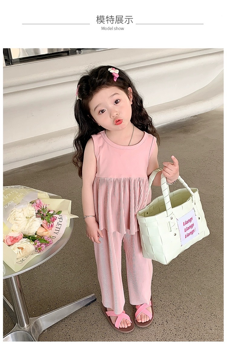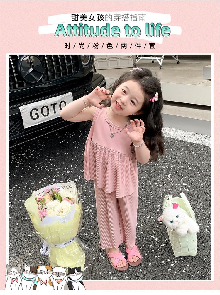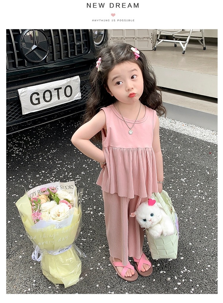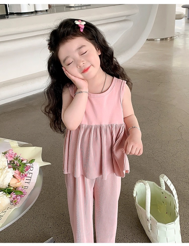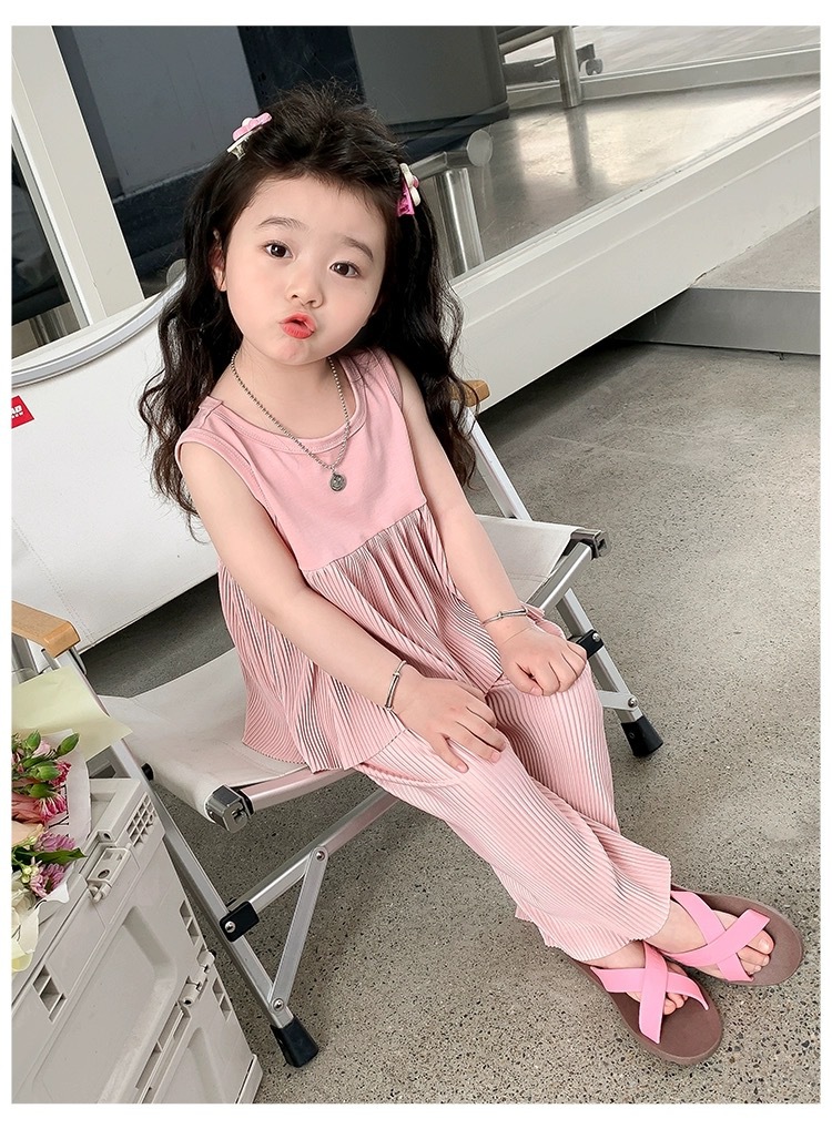 여아용 새 스타일 조끼형 베이비탑, 한국 스타일 아동복, 얇은 와이드 팬츠, 모기 방지 바지 세트 (중소형 아동용)스토어 가기