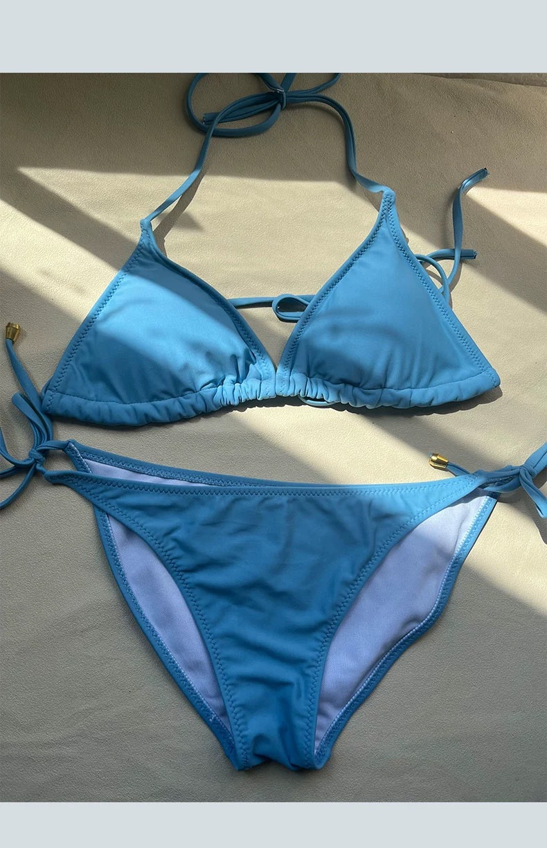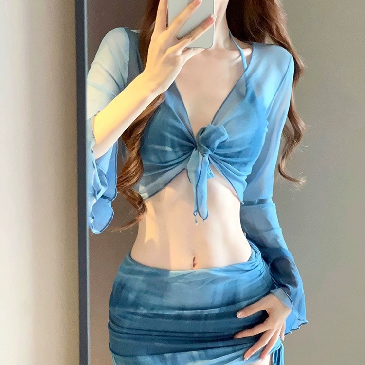 2024 새로운 4 피스 세트 블루 렌더링 그라디언트 비키니 여자 더블 레이어 베일 원피스 섹시한 커버 슬림