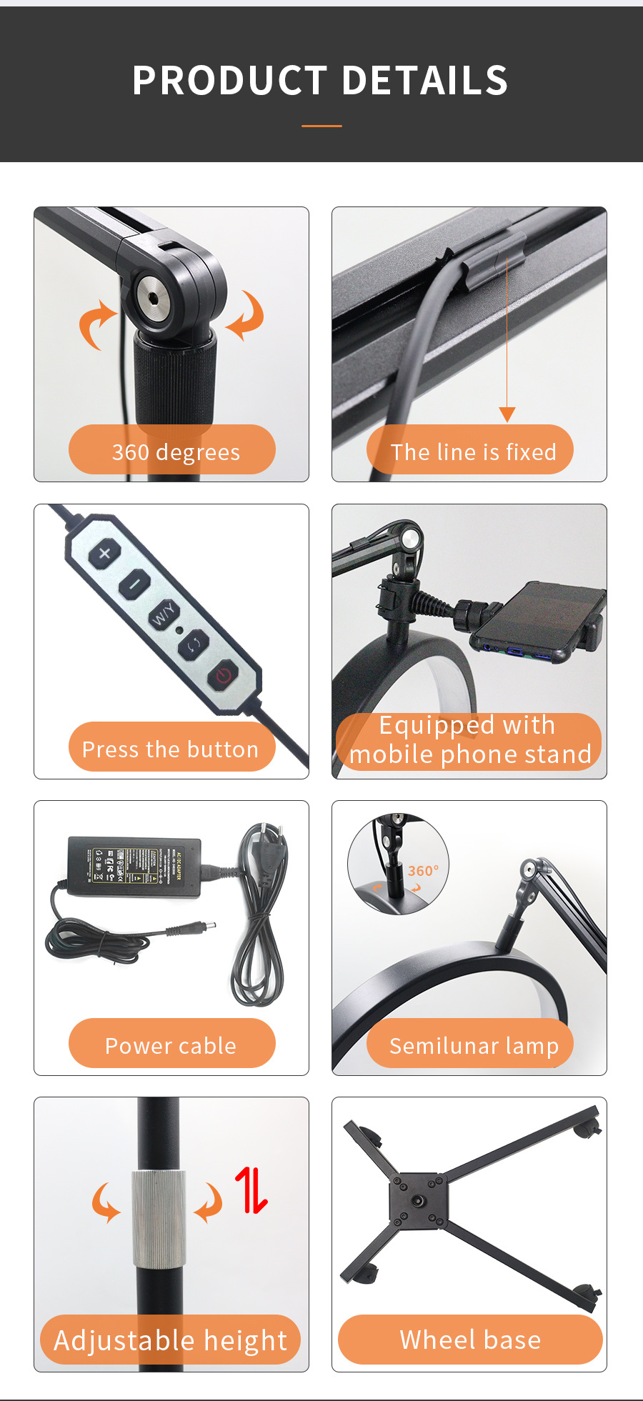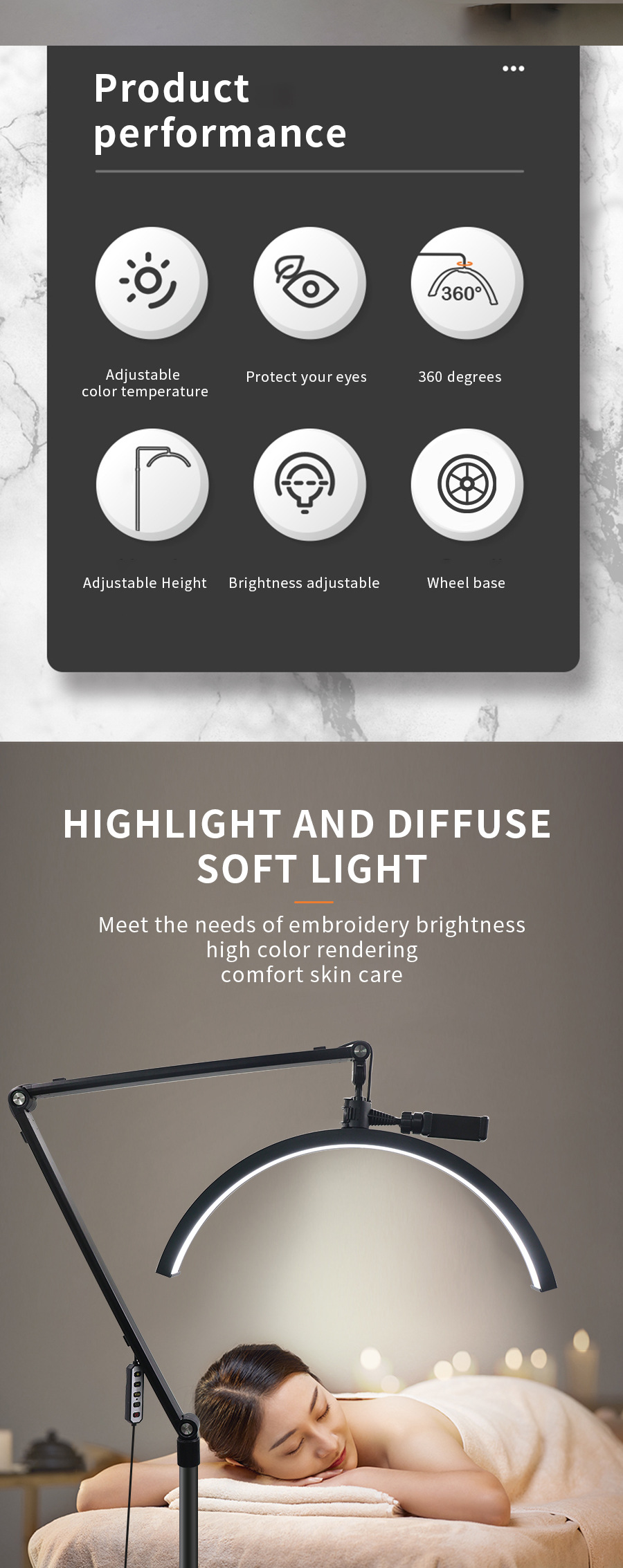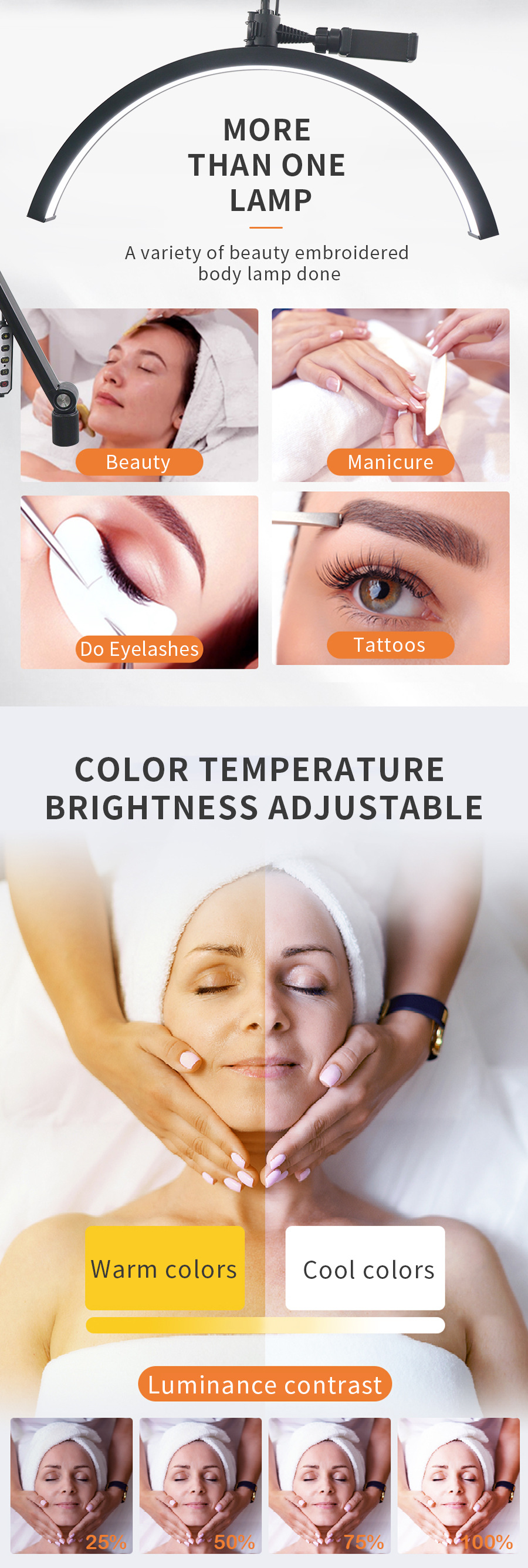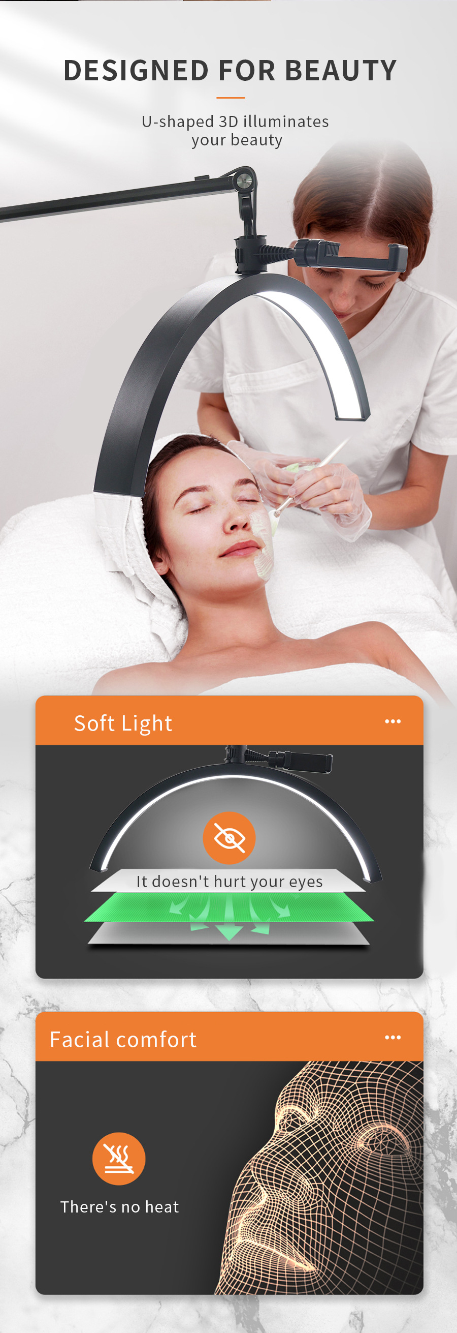 M50X20 인치 반달 캔틸레버 뷰티 라이트 눈썹 문신 U 자형 조정 가능한 색 온도 라이브 달 채우기 빛스토어 가기