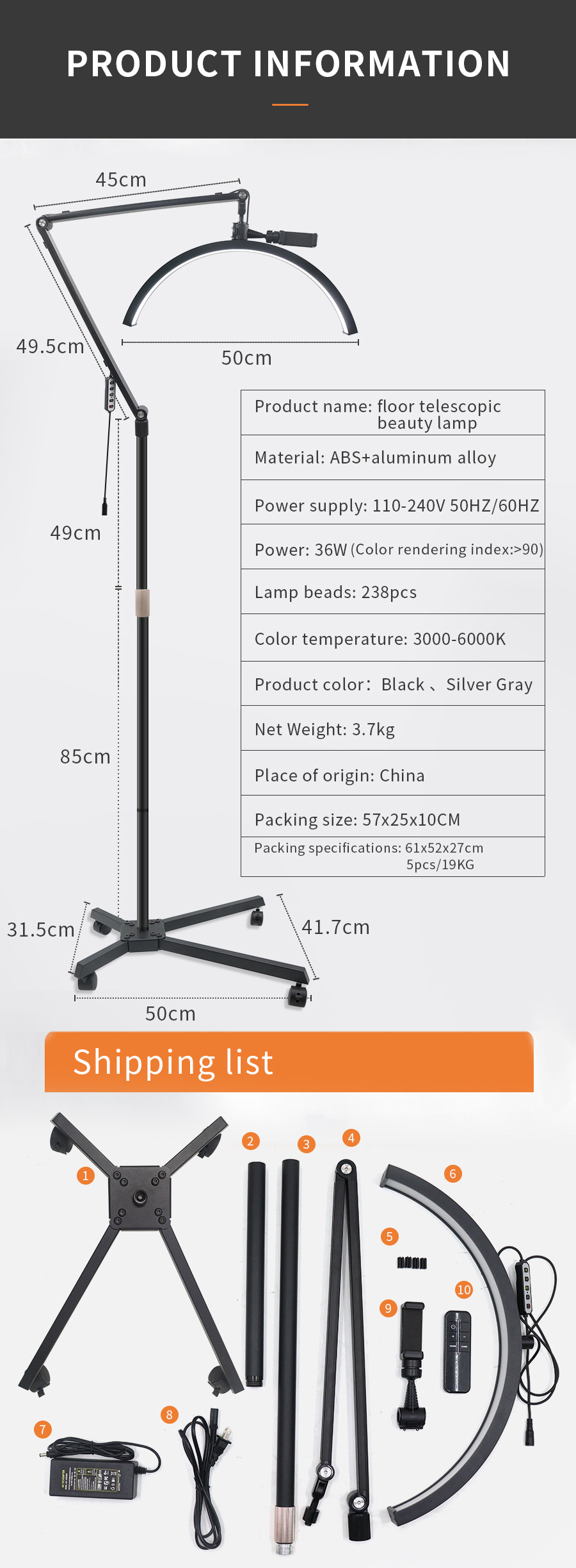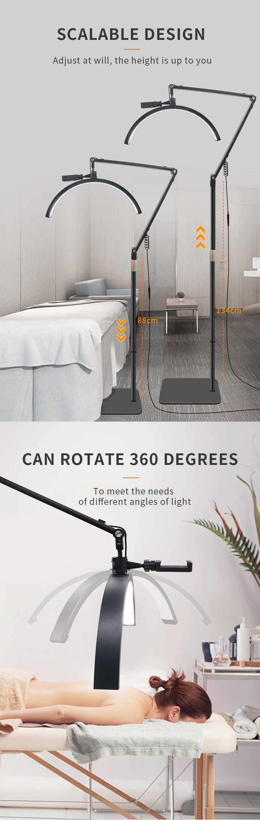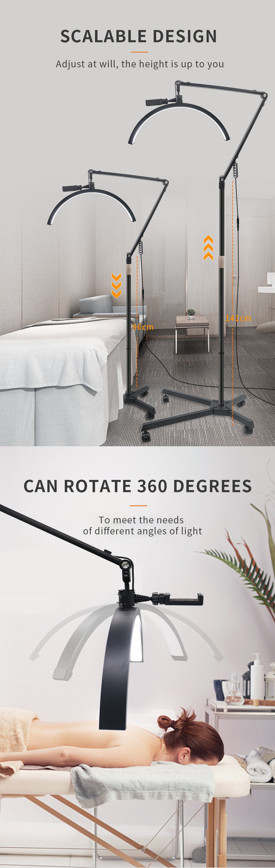 M50X20 인치 반달 캔틸레버 뷰티 라이트 눈썹 문신 U 자형 조정 가능한 색 온도 라이브 달 채우기 빛