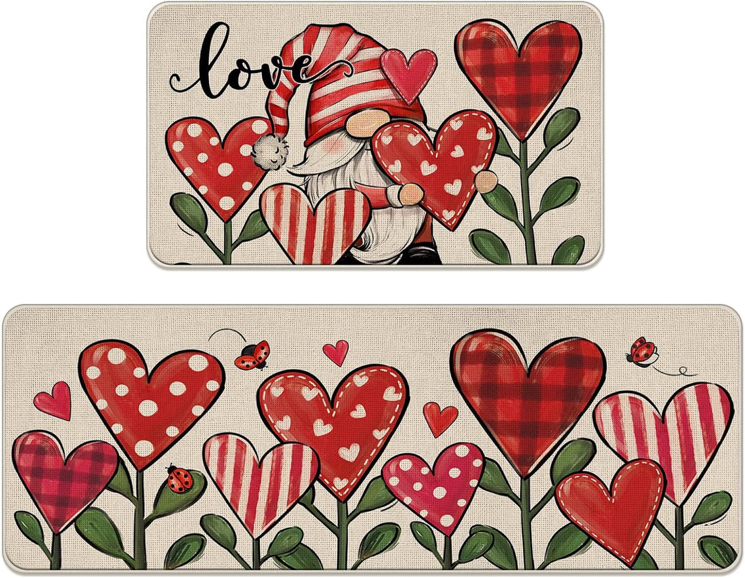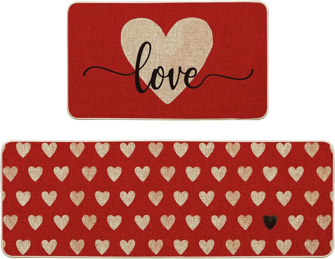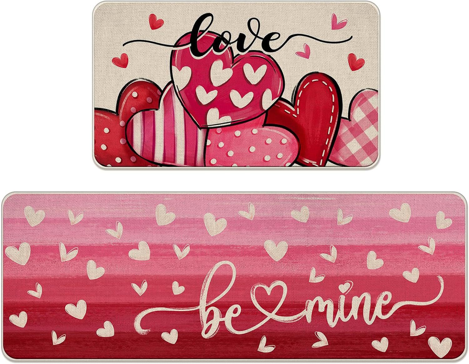 아마존 새로운 발렌타인 데이 바닥 매트 2 피스 주방 바닥 매트 욕실 흡수성 얼룩 방지 바닥 매트 홈 매트 재고