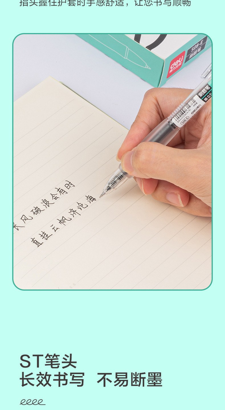 델리 S08 젤 펜 프레스 높은 색상 값 0.5 블랙 플라스틱 시그니처 펜 학생 브러시 질문 문구 용품 도매