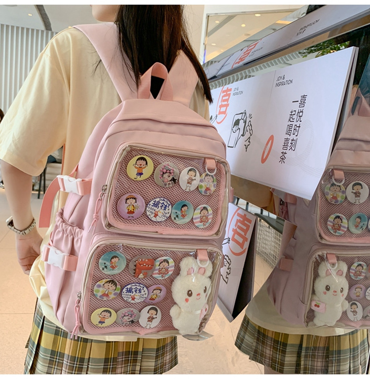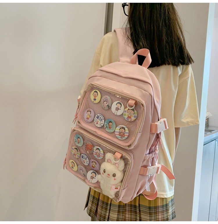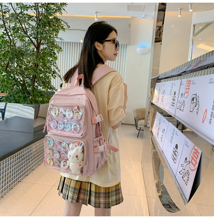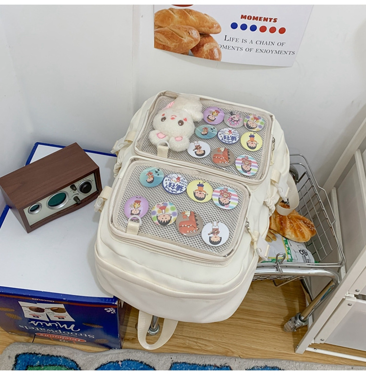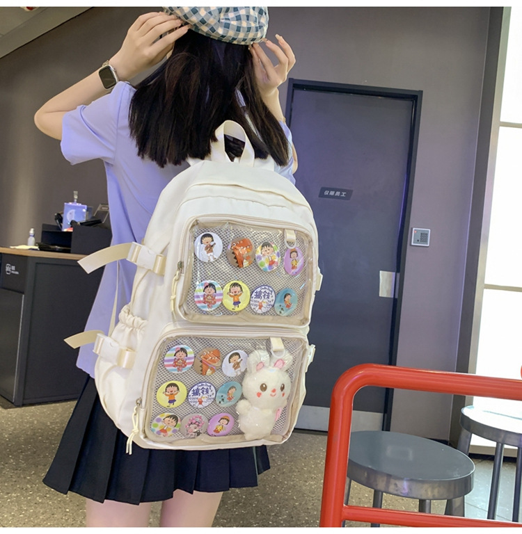 투명 배낭 여성 심플 주니어 고교 학생 배낭 한국 캐주얼 대용량 일본식 새 배낭