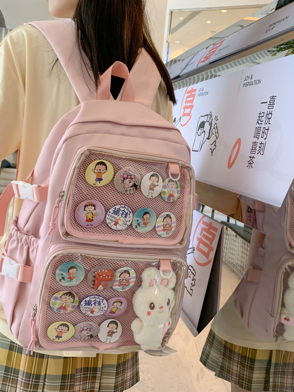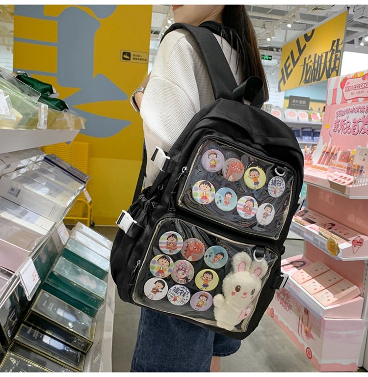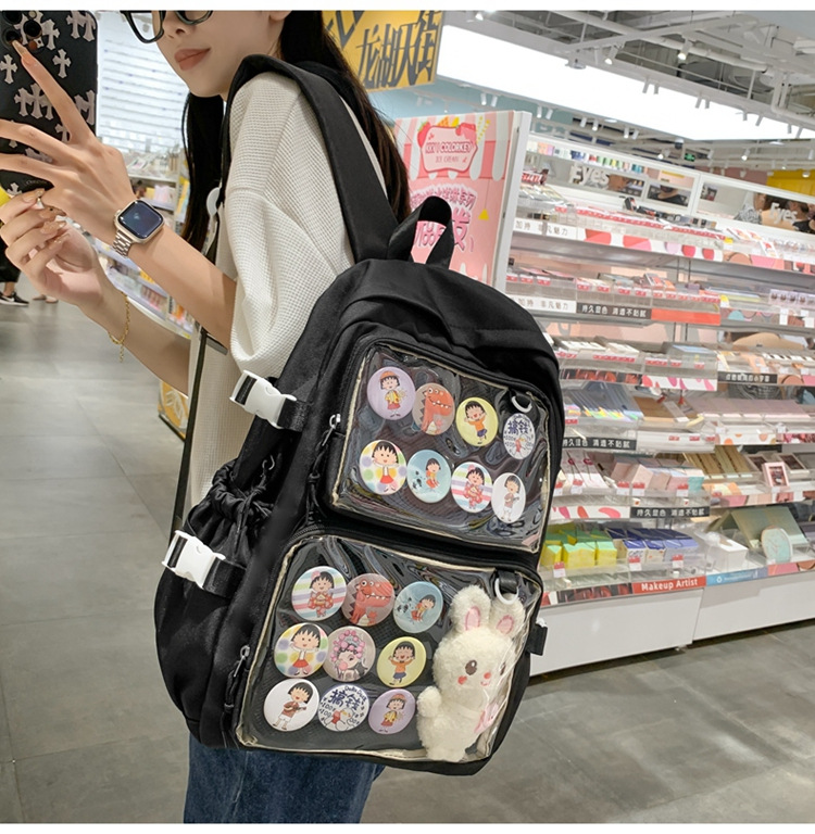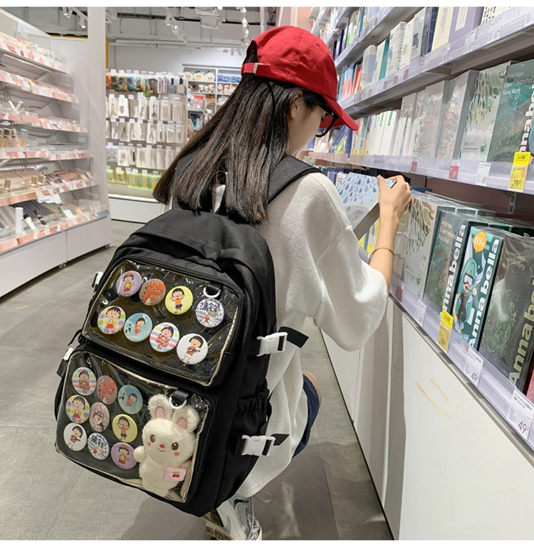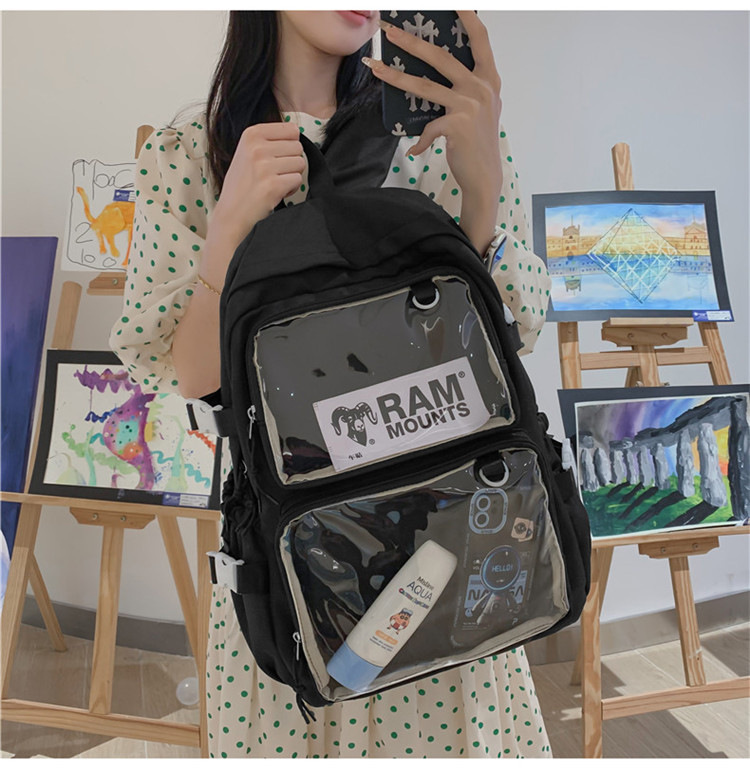 투명 배낭 여성 심플 주니어 고교 학생 배낭 한국 캐주얼 대용량 일본식 새 배낭스토어 가기