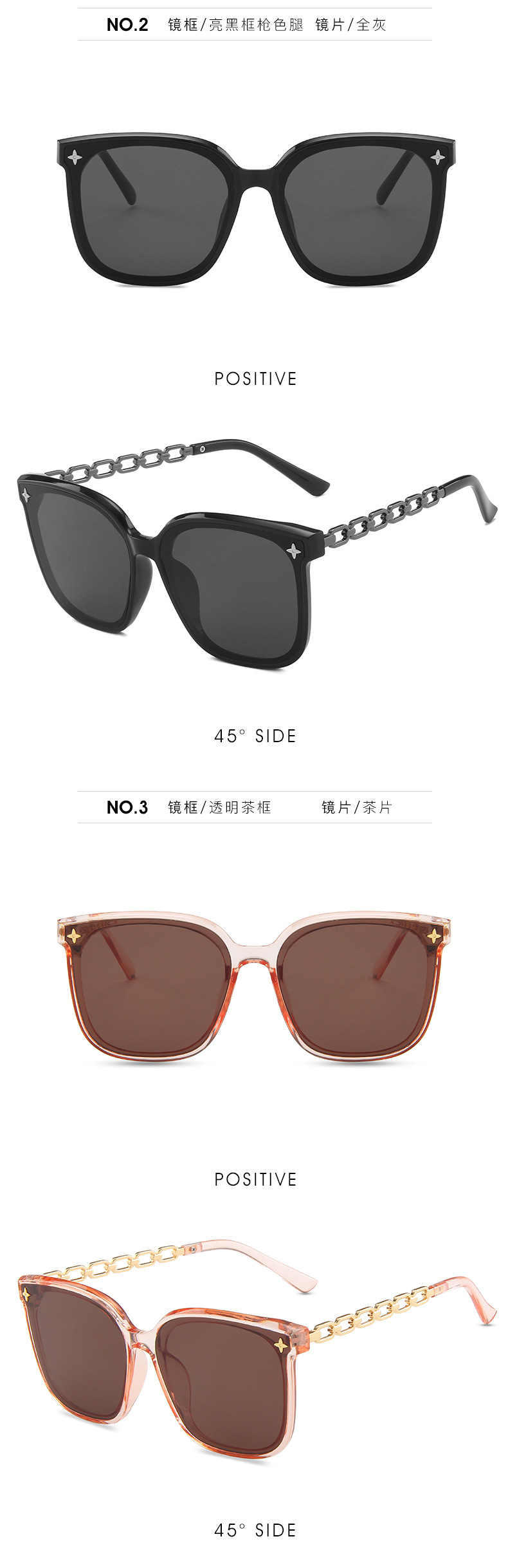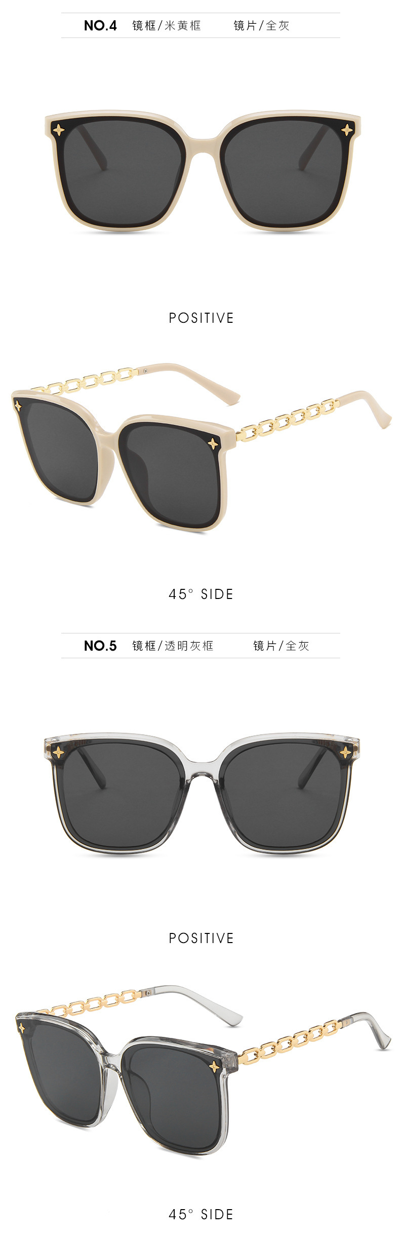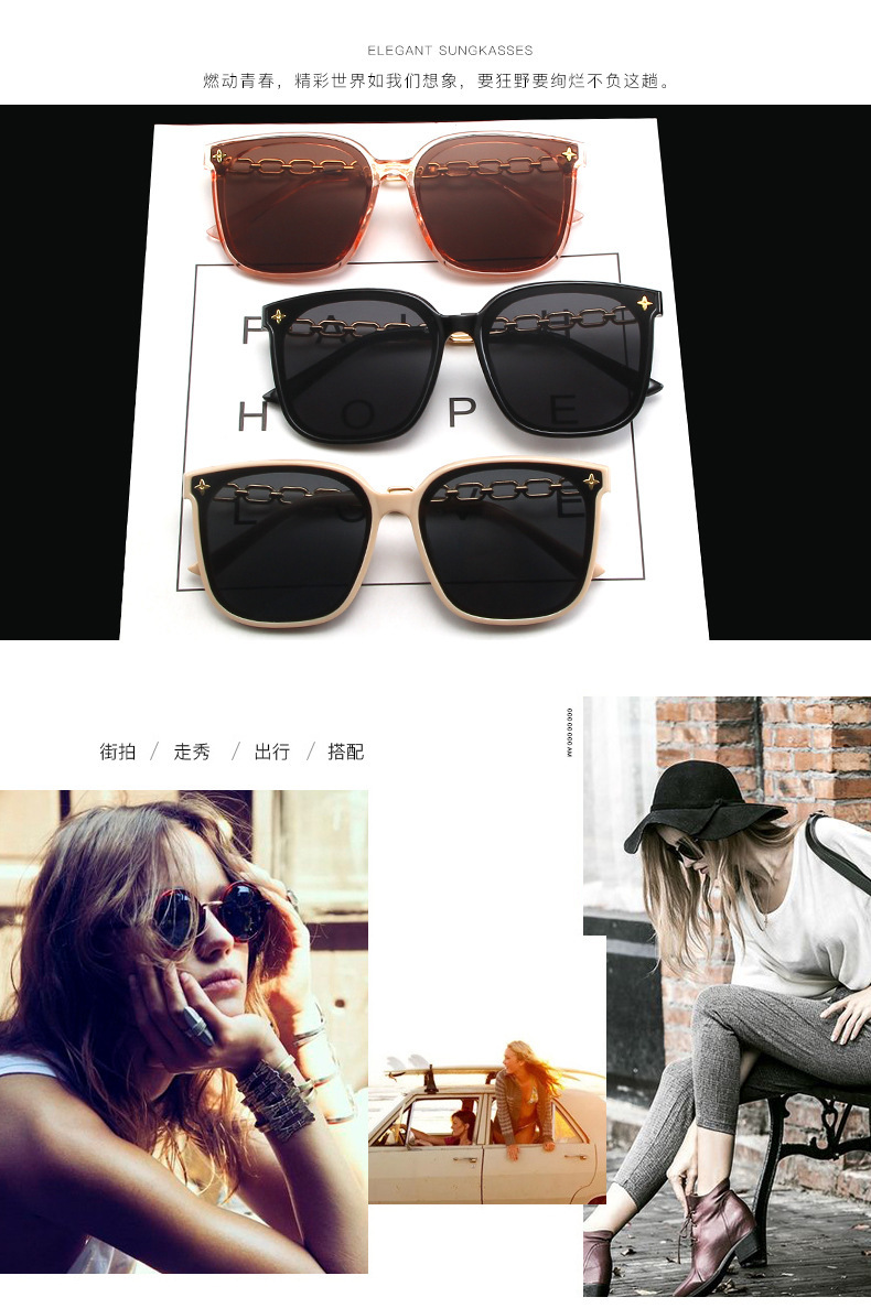 하이 엔드 선글라스 여성의 얼굴 작은 2023 새로운 체인 다리 별 선글라스 큰 얼굴 얇은 검은 색스토어 가기