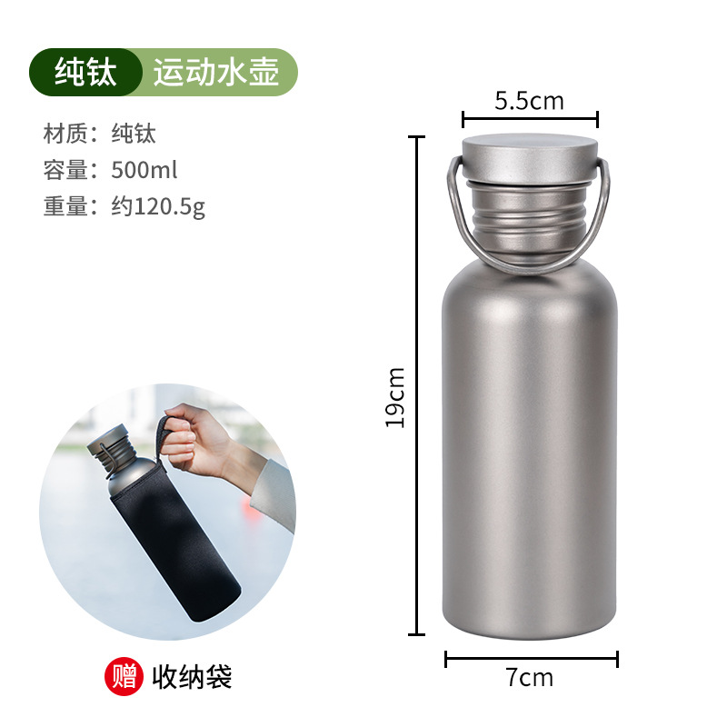 순수한 티타늄 야외 스포츠 주전자 단일 레이어 캠핑 물병 경량 휴대용 캠핑 물 컵 끓는 물 등반 냄비