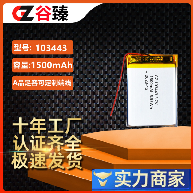 现货103443 1500mah 3.7V美容仪电池早教机蓝牙音响聚合物锂电池