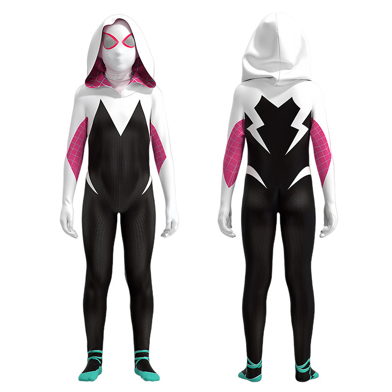 마일즈 블랙 스파이더 맨 점프 수트 꽉 옷 남녀 성인 어린이 Gwin cos 의류 헤드 기어 세트