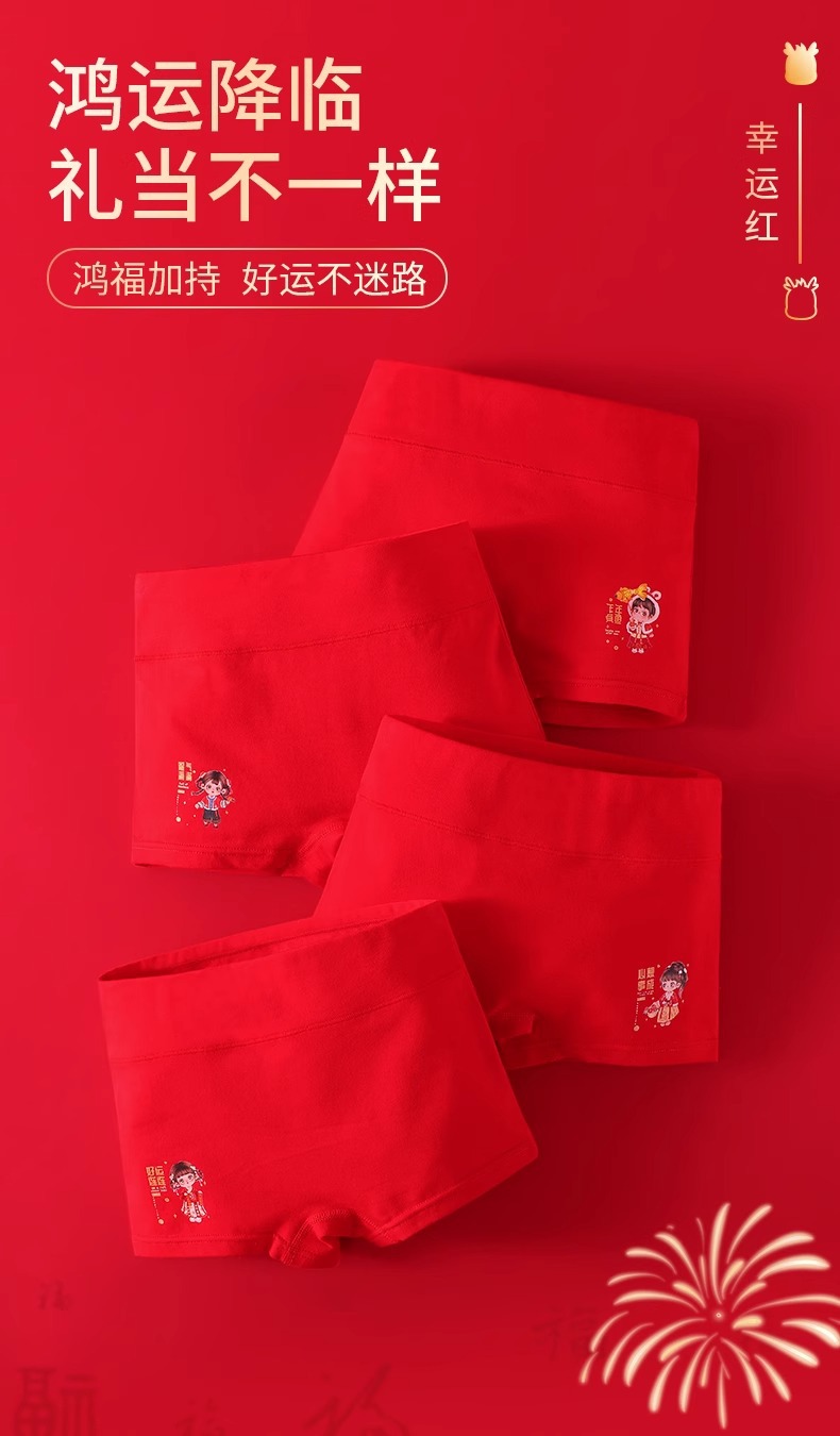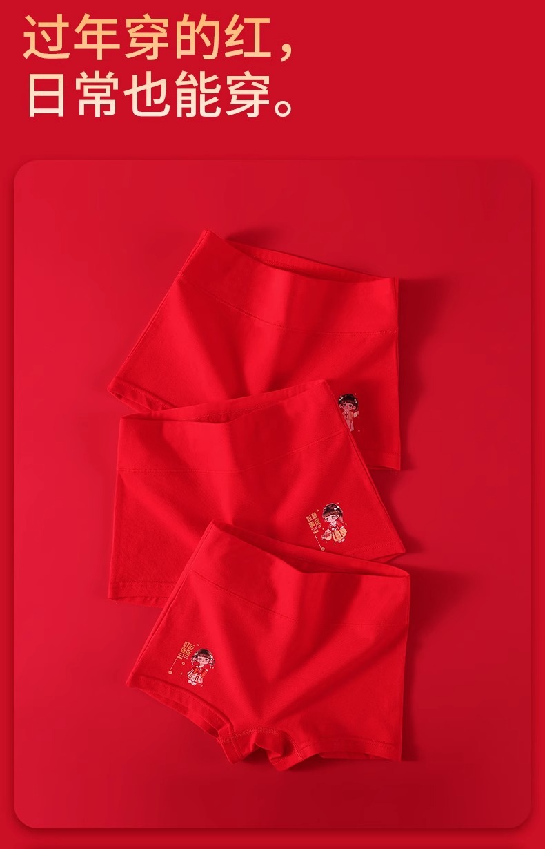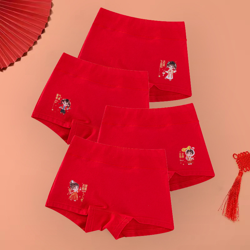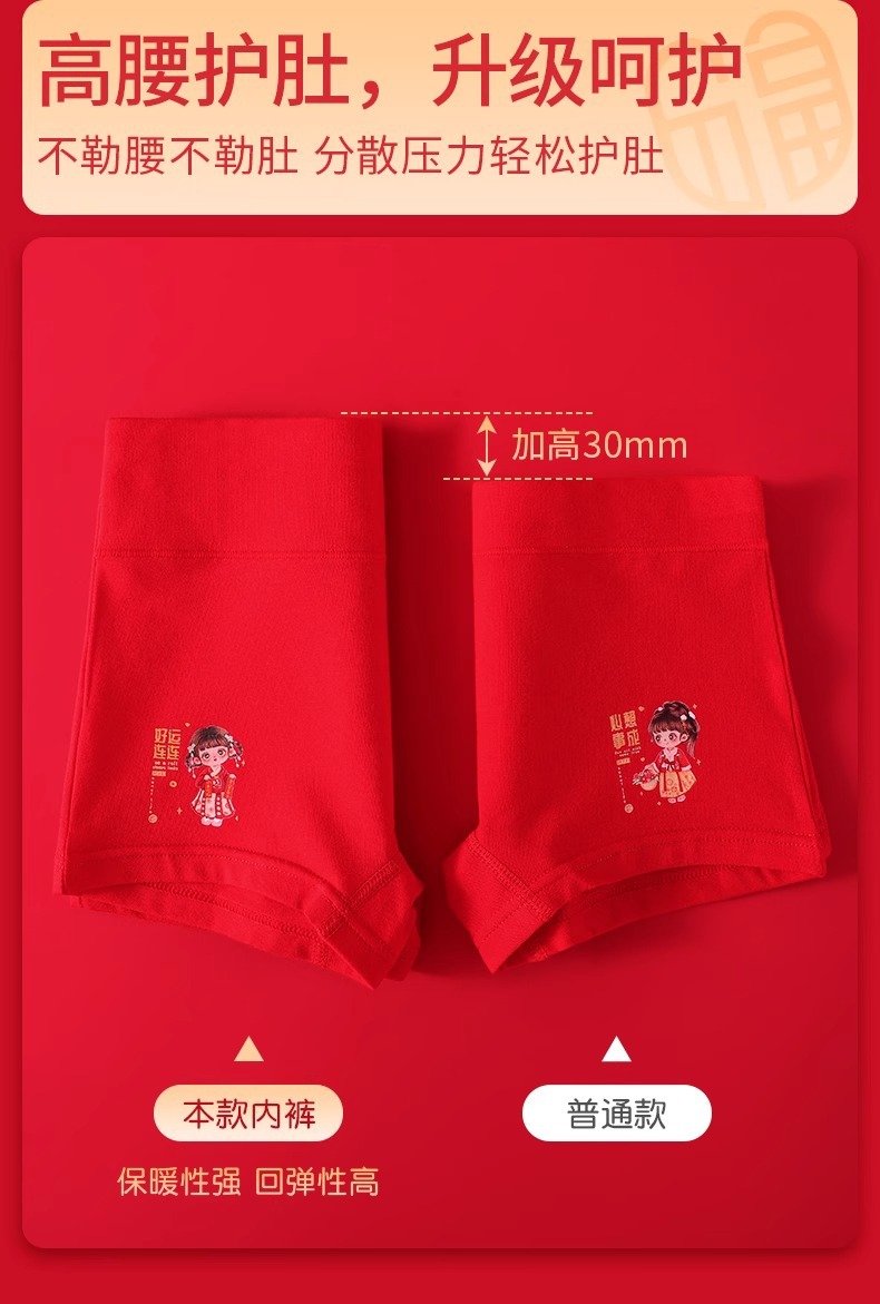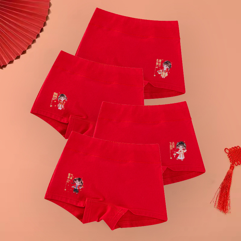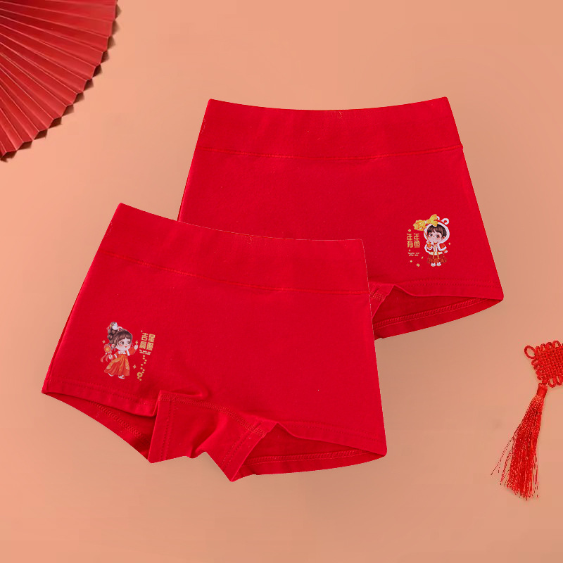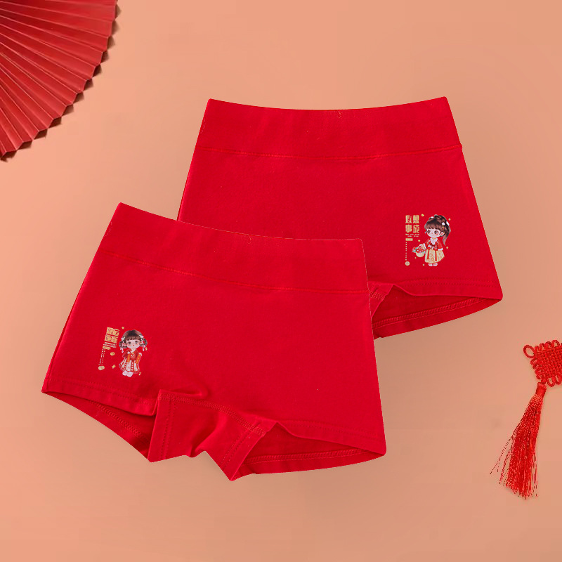 아동 속옷 A형 여아의 탄생년 레드 하이웨이스트 코튼 슈트 여아용 플랫앵글 사각팬티