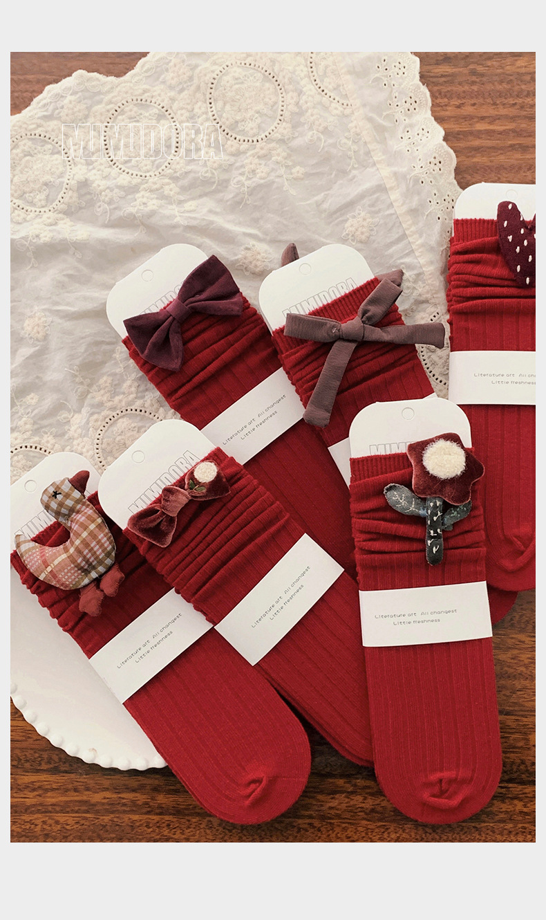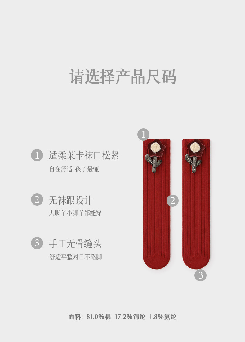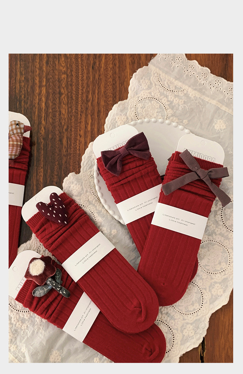 소녀 붉은 새해 양말 어린이 양말 봄과 가을 아기 소녀 스타킹 단색 면 양말 귀여운 가을과 겨울 크리스마스 양말
