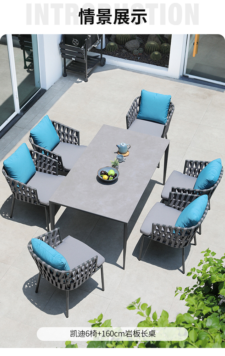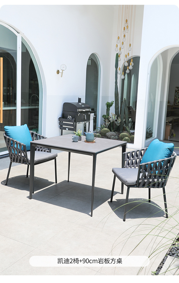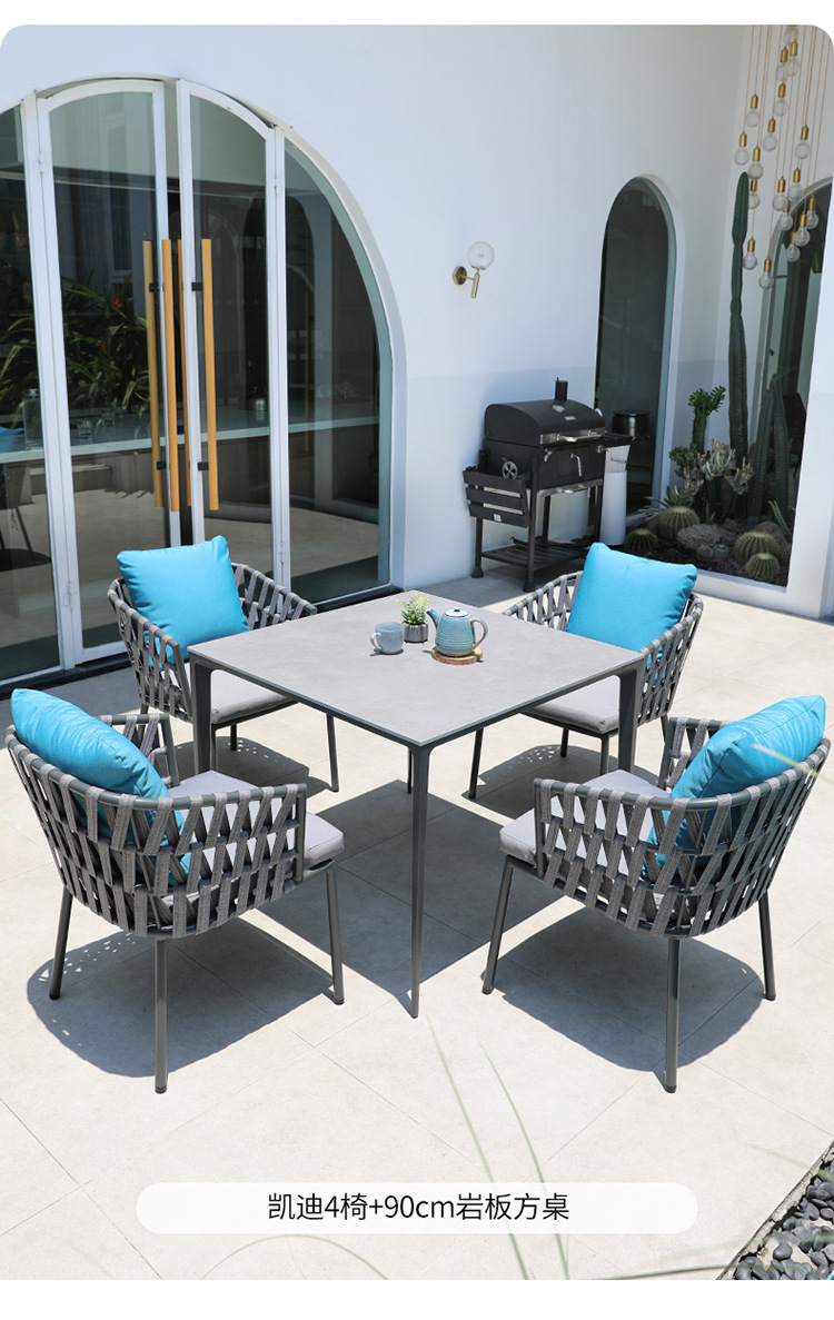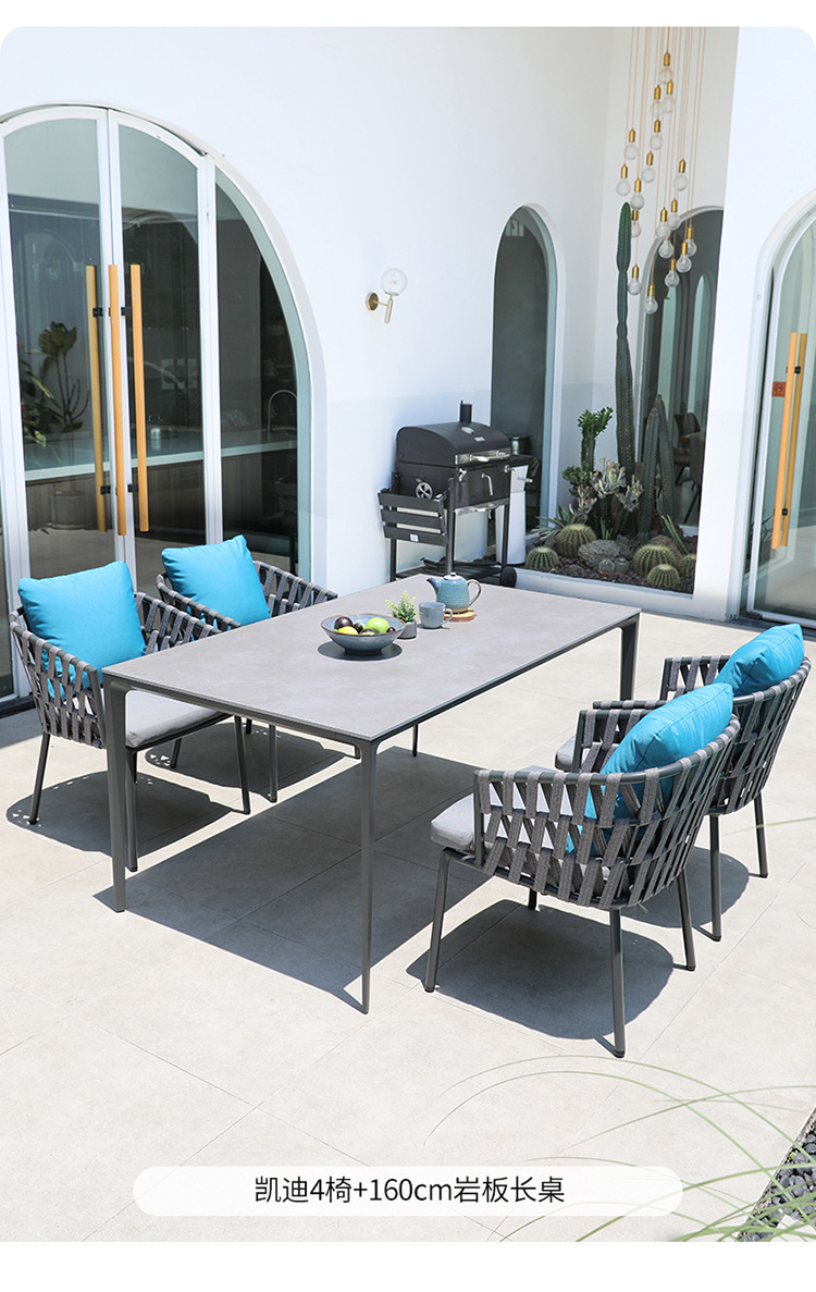 북유럽 야외 테이블 및 의자 빌라 테라스 부식 방지 목재 안뜰 야외 정원 방수 자외선 차단제 단단한 나무 바위 접시 식탁 및 의자스토어 가기