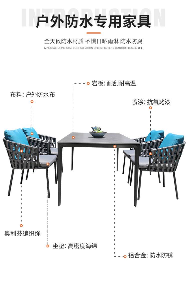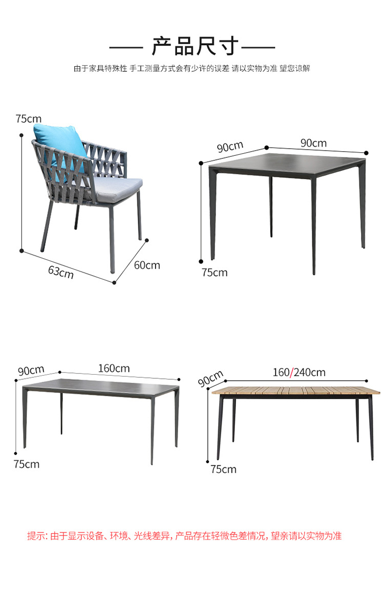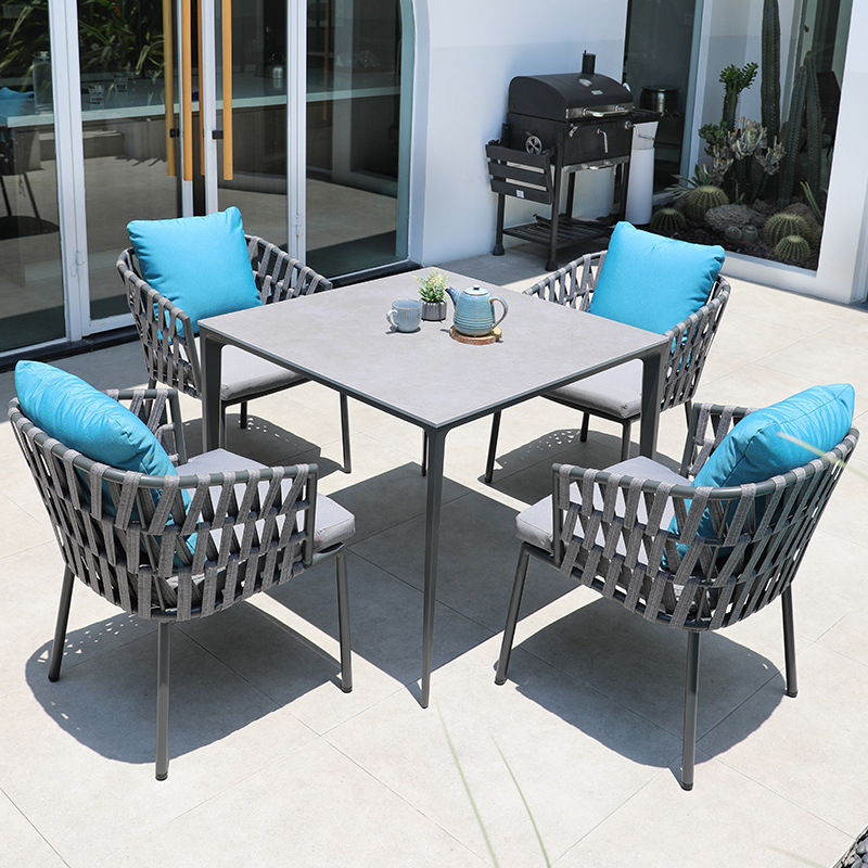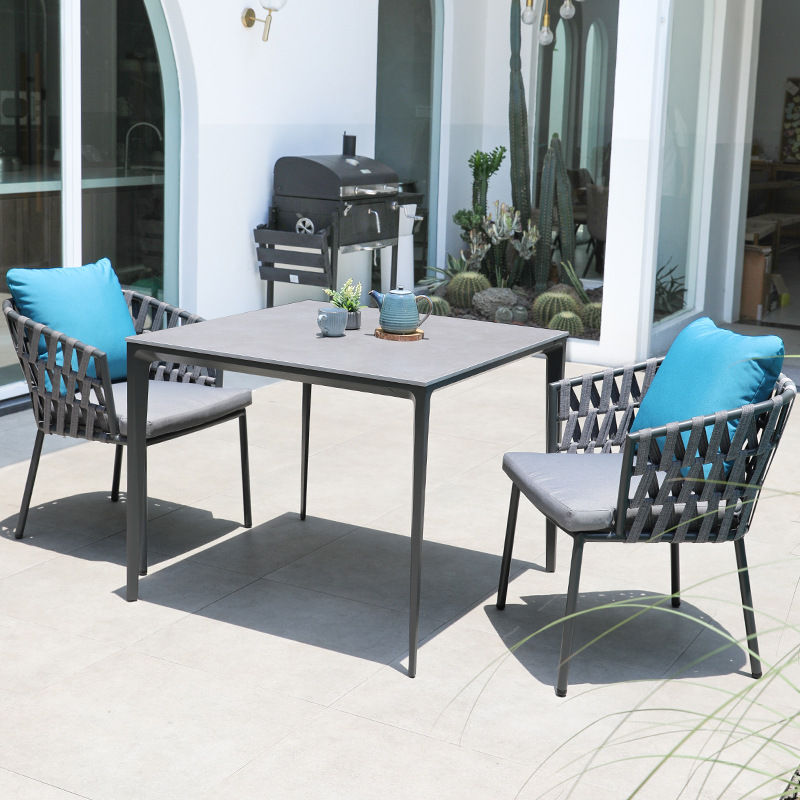 북유럽 야외 테이블 및 의자 빌라 테라스 부식 방지 목재 안뜰 야외 정원 방수 자외선 차단제 단단한 나무 바위 접시 식탁 및 의자스토어 가기