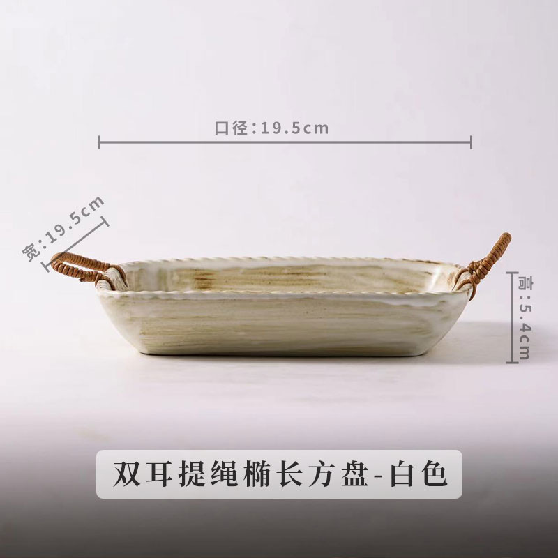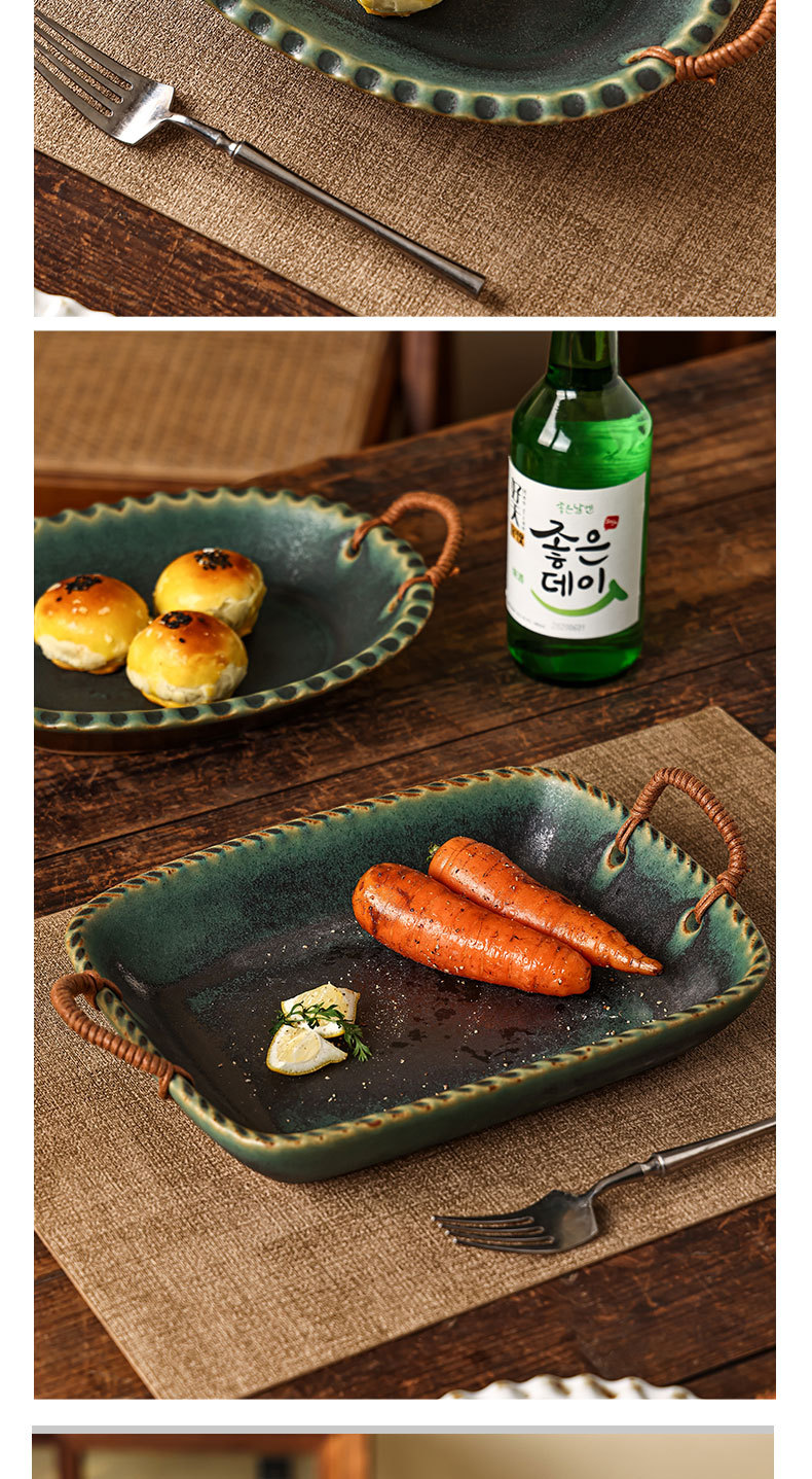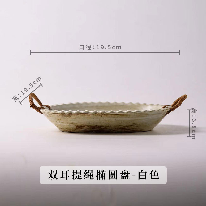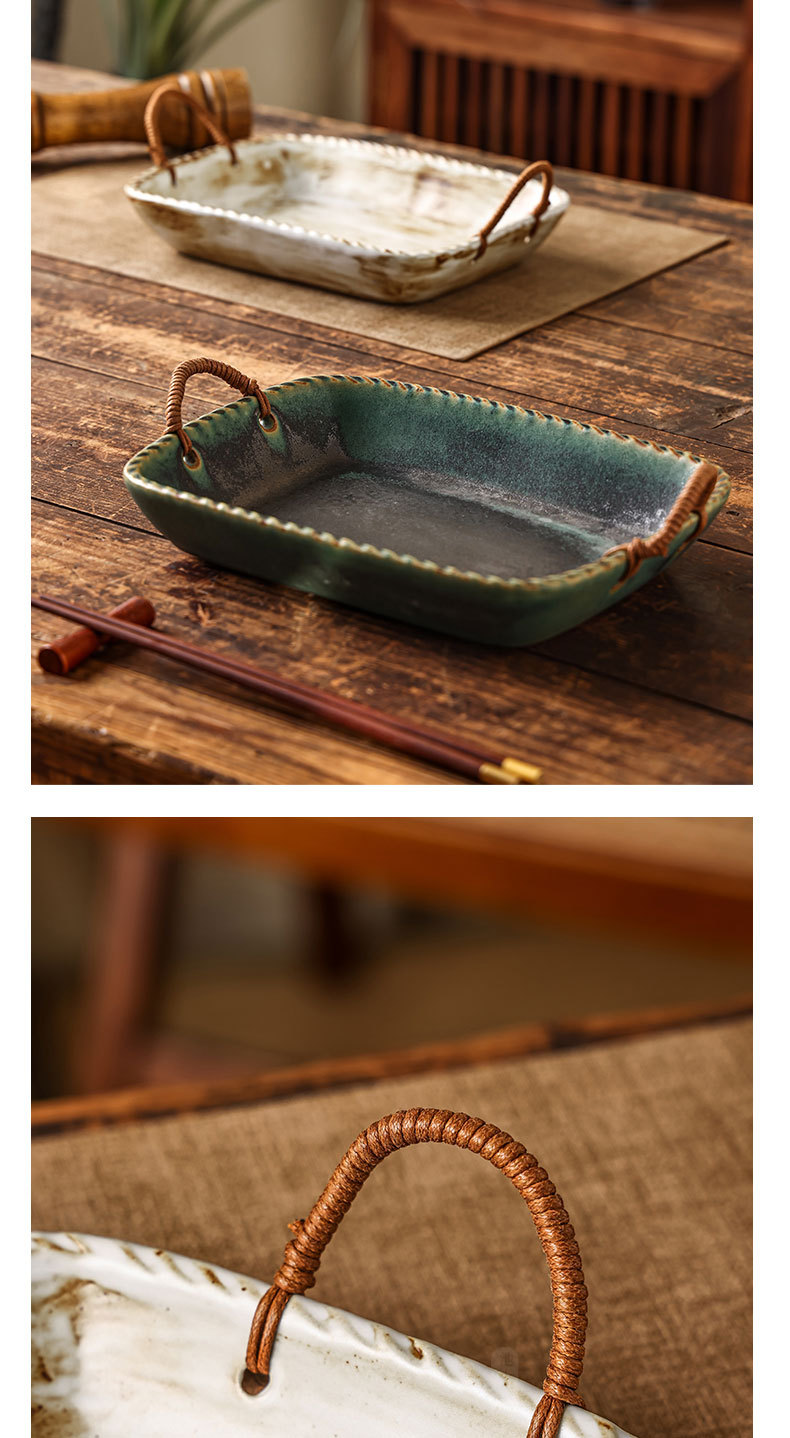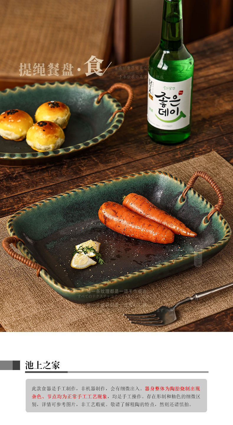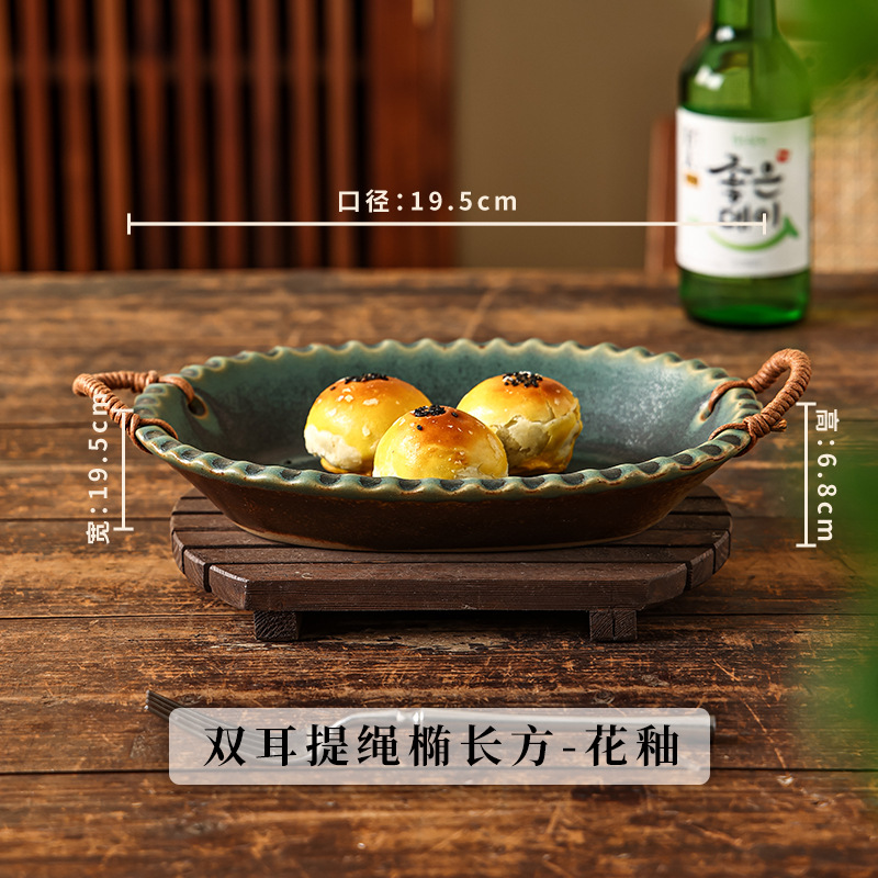 Yilongxuan 세라믹 대마 로프 쌍안경 거친 도자기 깊은 접시 큰 접시 접시 접시 가정용 일본 스타일 빈티지 식기 창조적 인스토어 가기