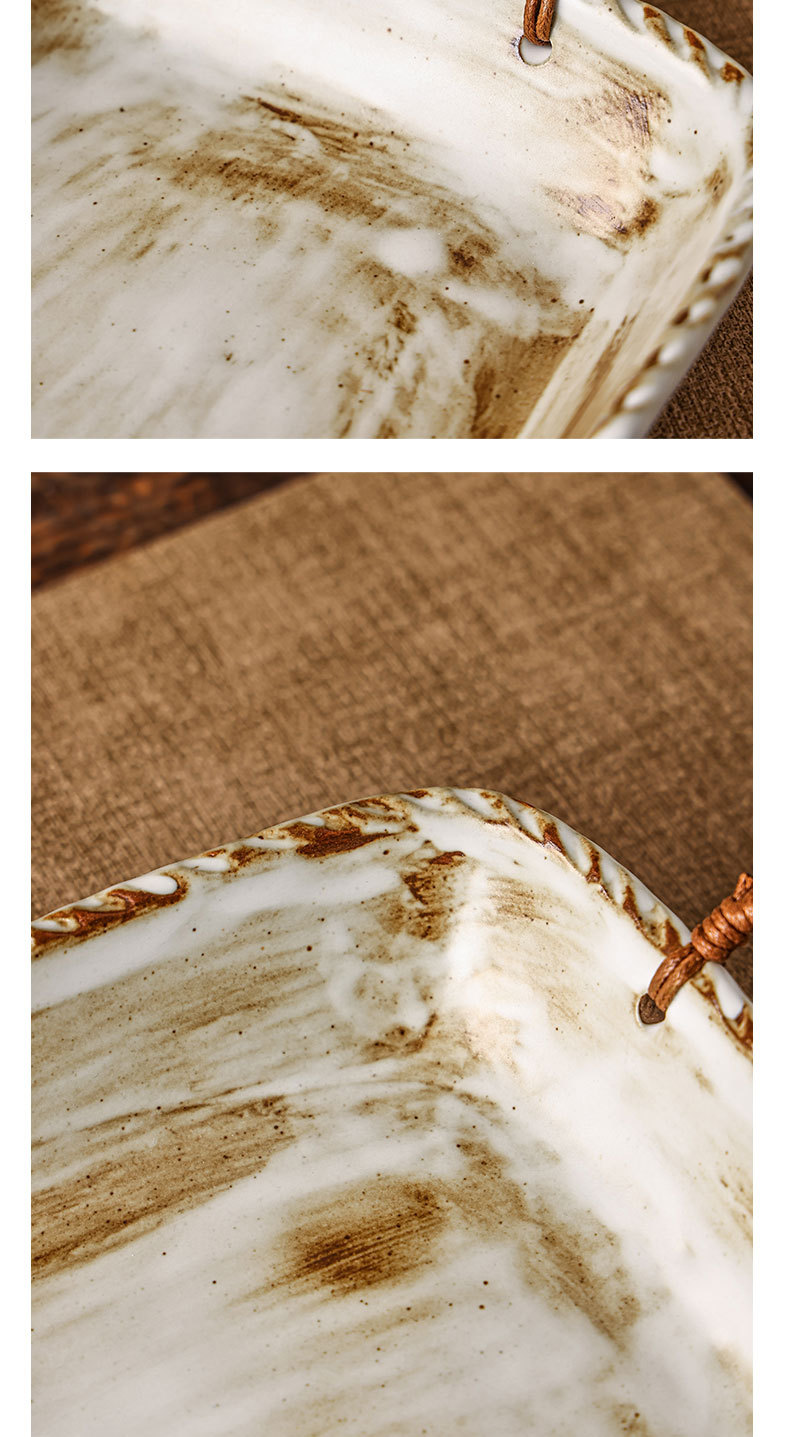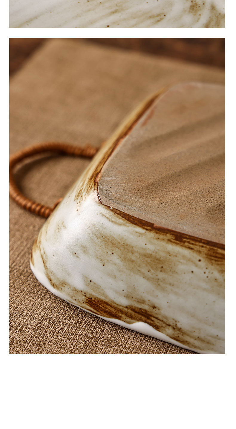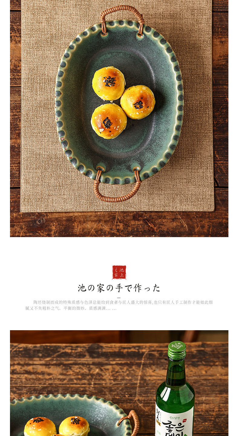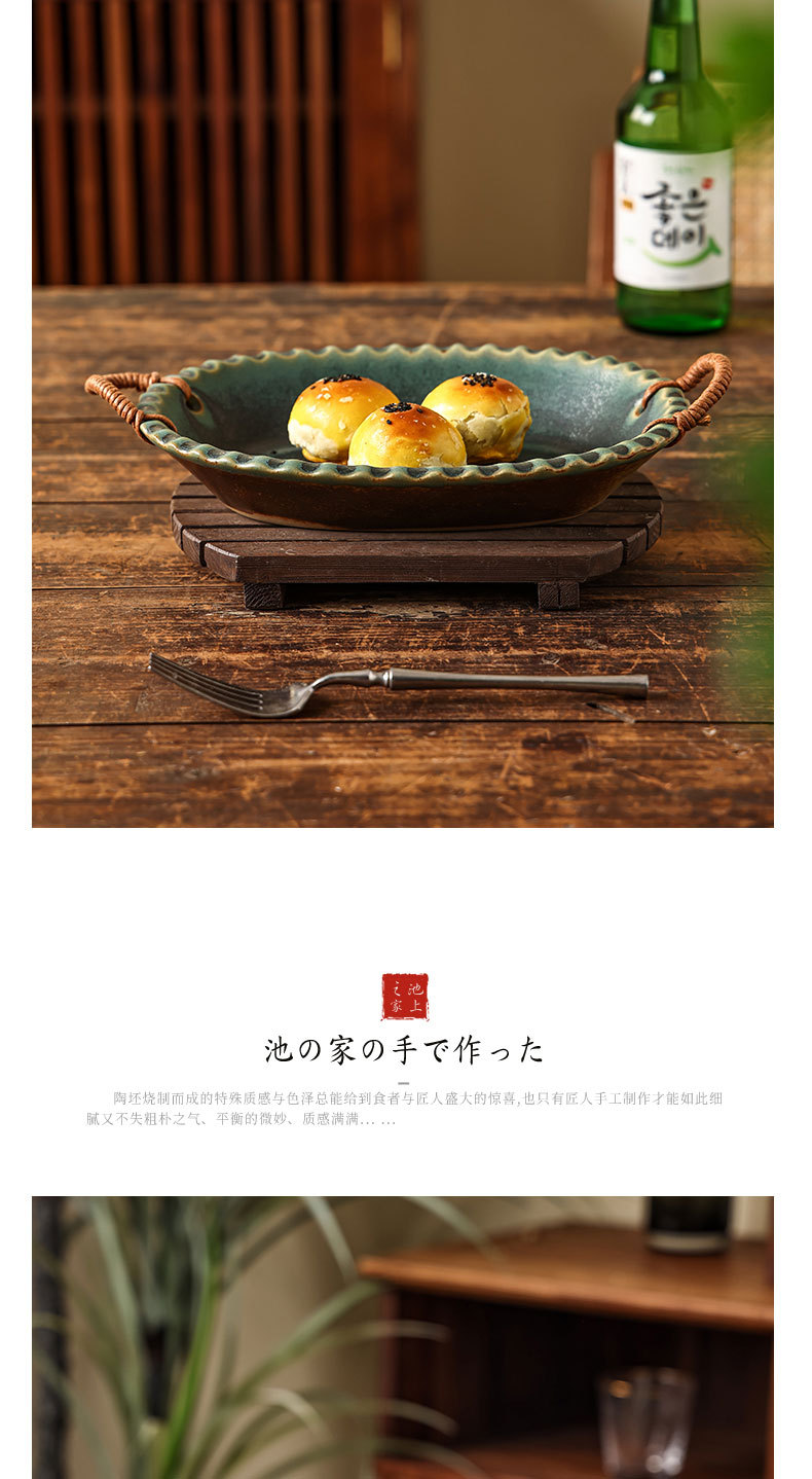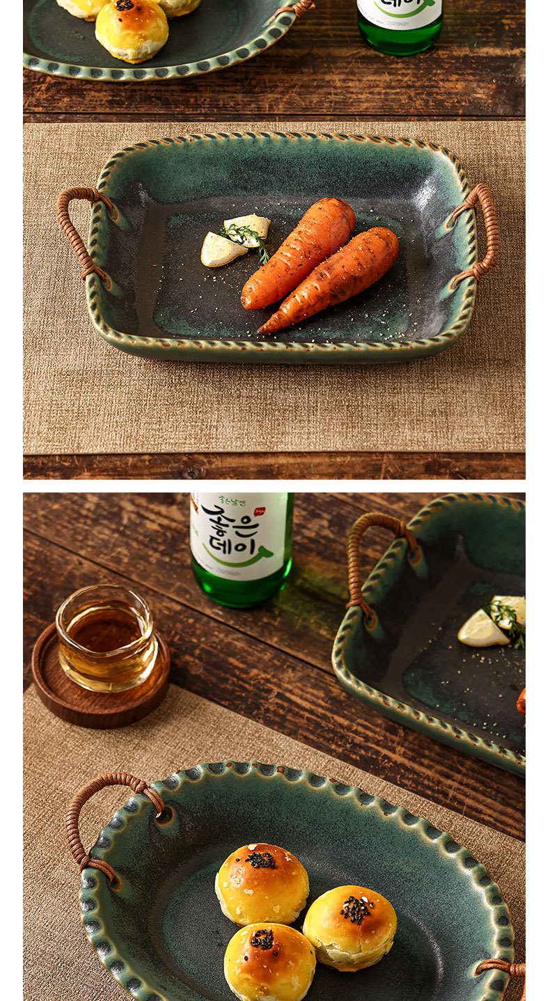 Yilongxuan 세라믹 대마 로프 쌍안경 거친 도자기 깊은 접시 큰 접시 접시 접시 가정용 일본 스타일 빈티지 식기 창조적 인스토어 가기