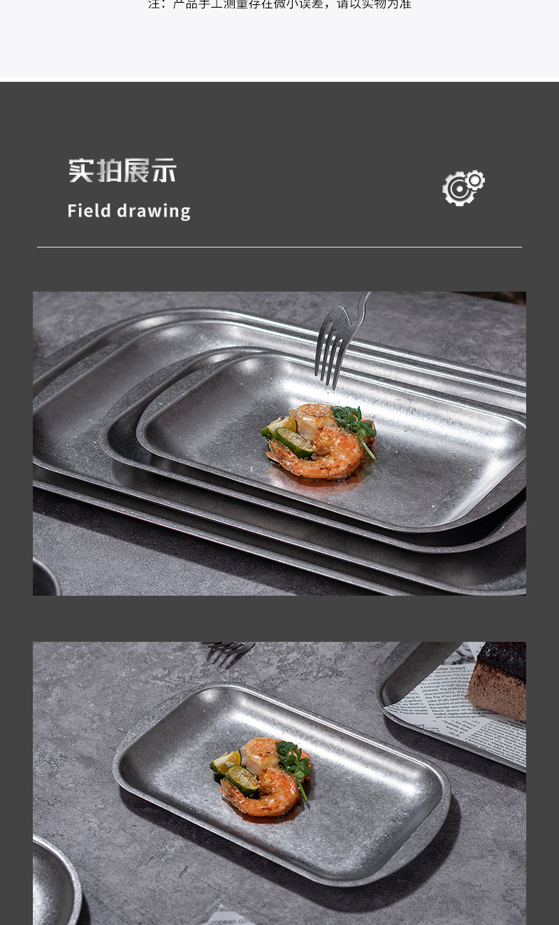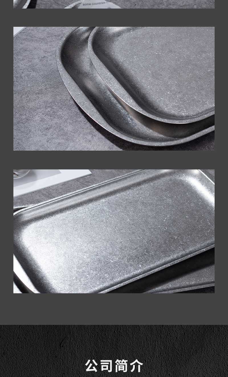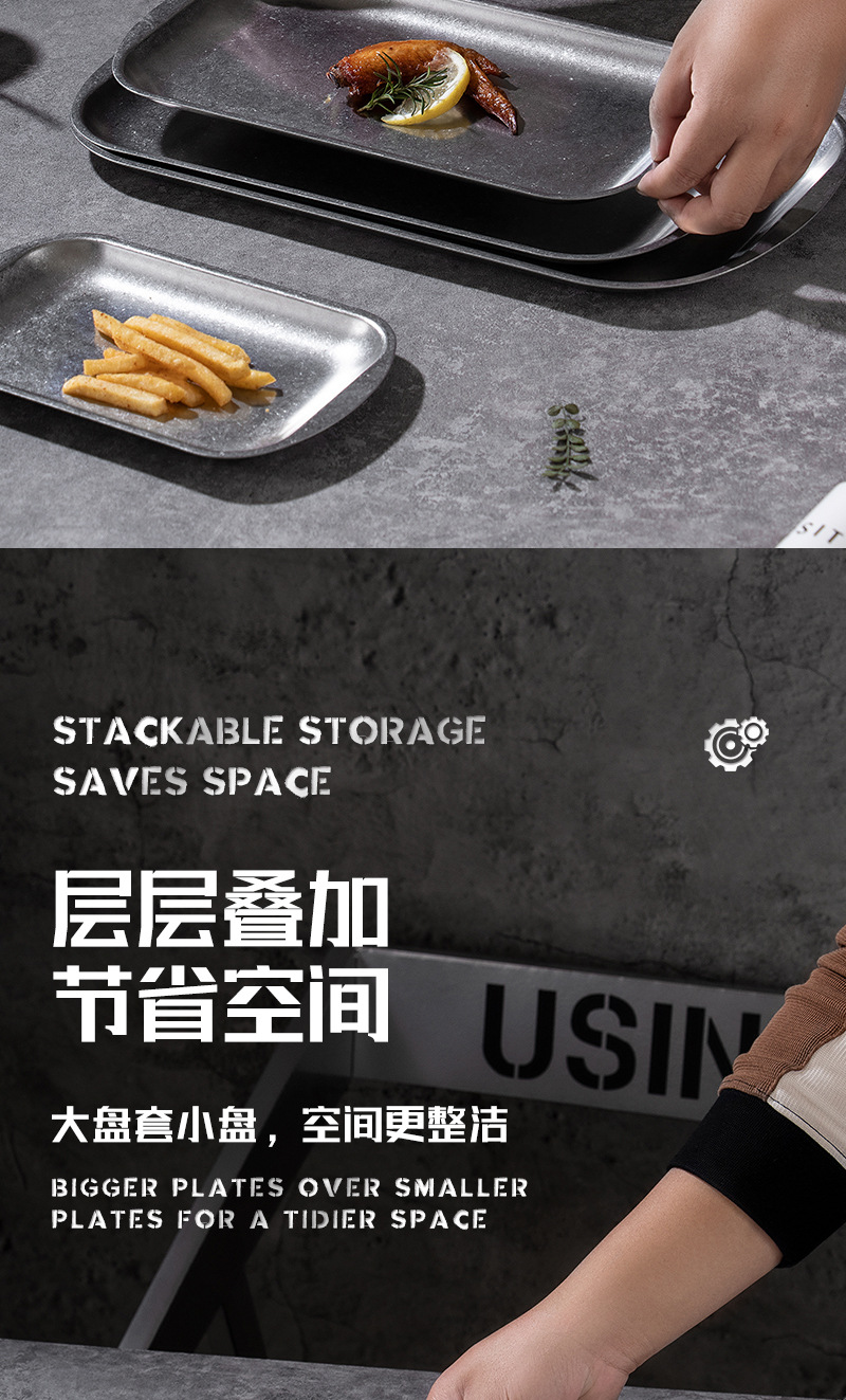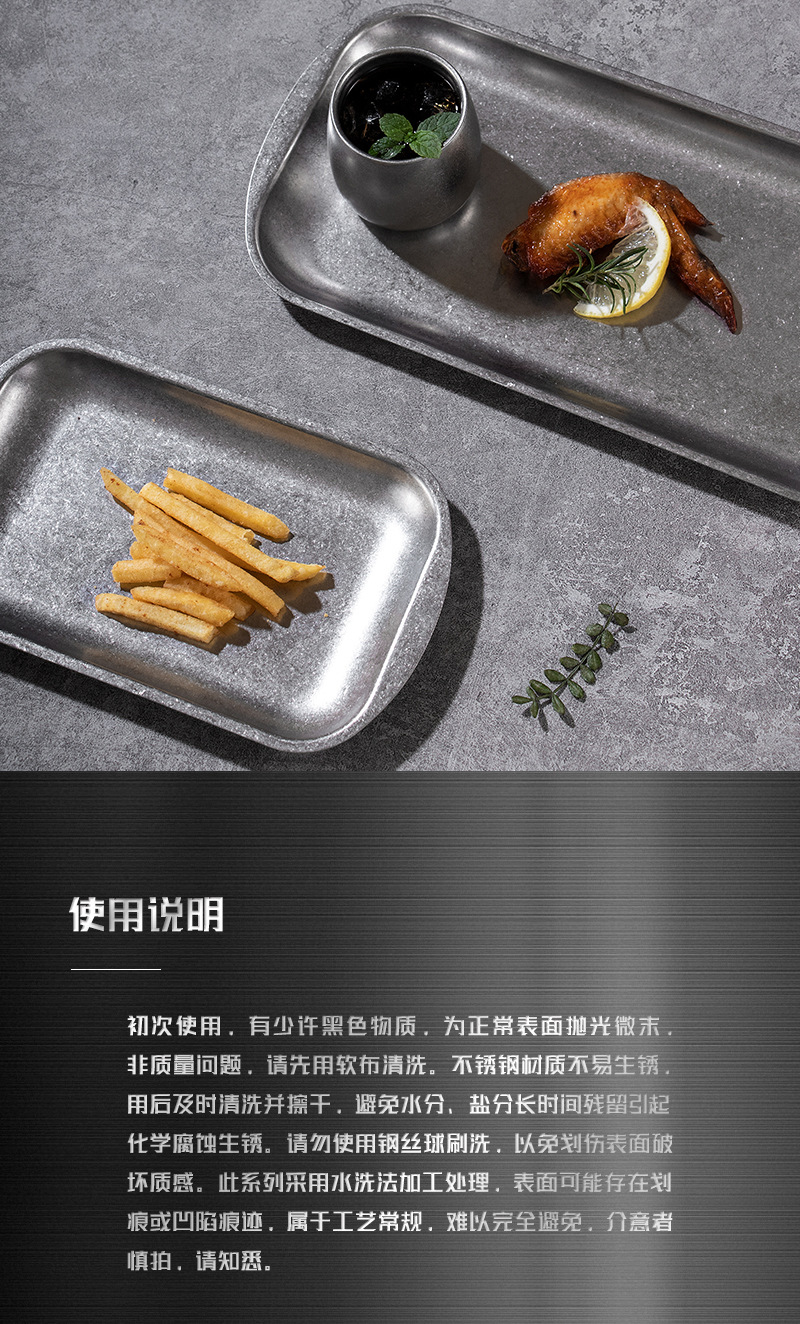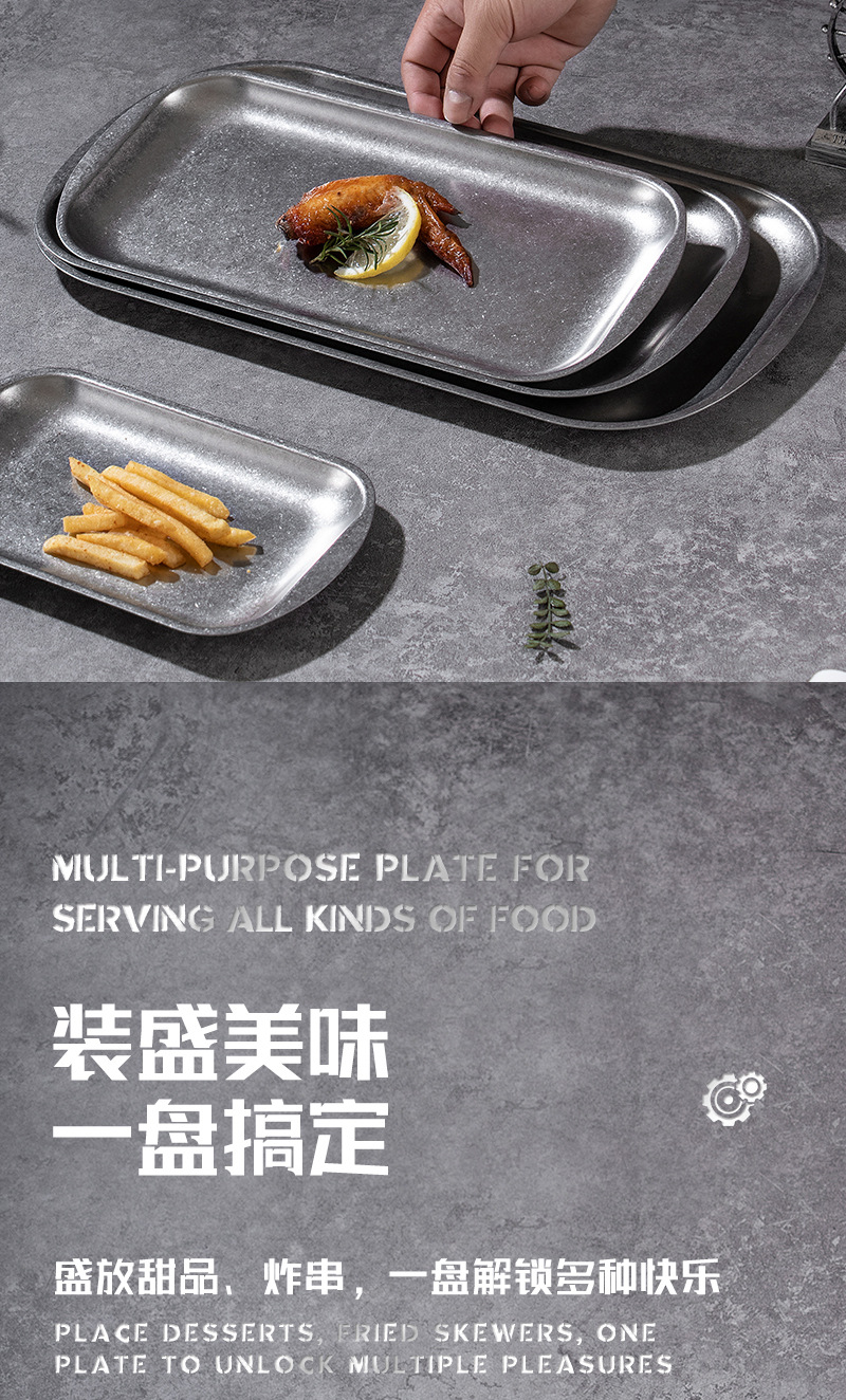 304 스테인레스 스틸 트레이 오래된 복고풍 조리 트레이 직사각형 스테이크 냄비 액세서리 트레이 손잡이가있는 접시 트레이스토어 가기