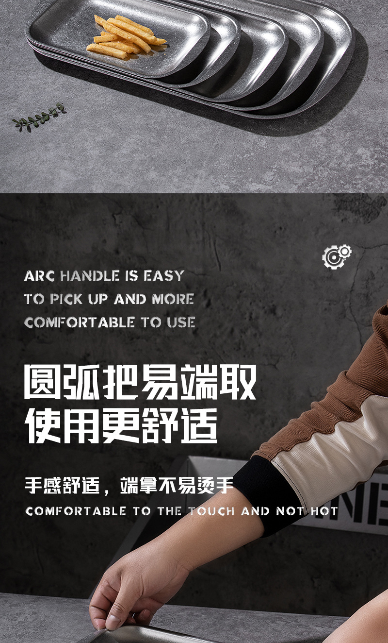 304 스테인레스 스틸 트레이 오래된 복고풍 조리 트레이 직사각형 스테이크 냄비 액세서리 트레이 손잡이가있는 접시 트레이