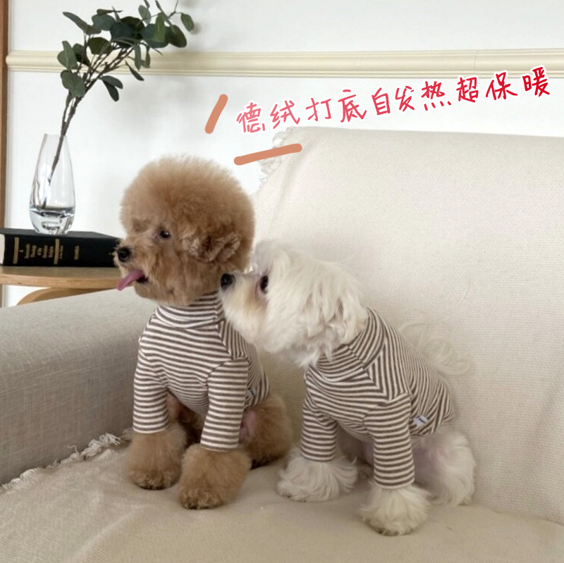 에 애완 동물 줄무늬 두꺼운 바닥 셔츠 강아지 테디 푸들 비촌 작은 개 고양이 따뜻한 가을과 겨울 의류